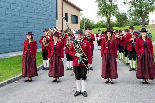 Begleitet von der Trachtenmusikkapelle zogen sie zur Kirche.