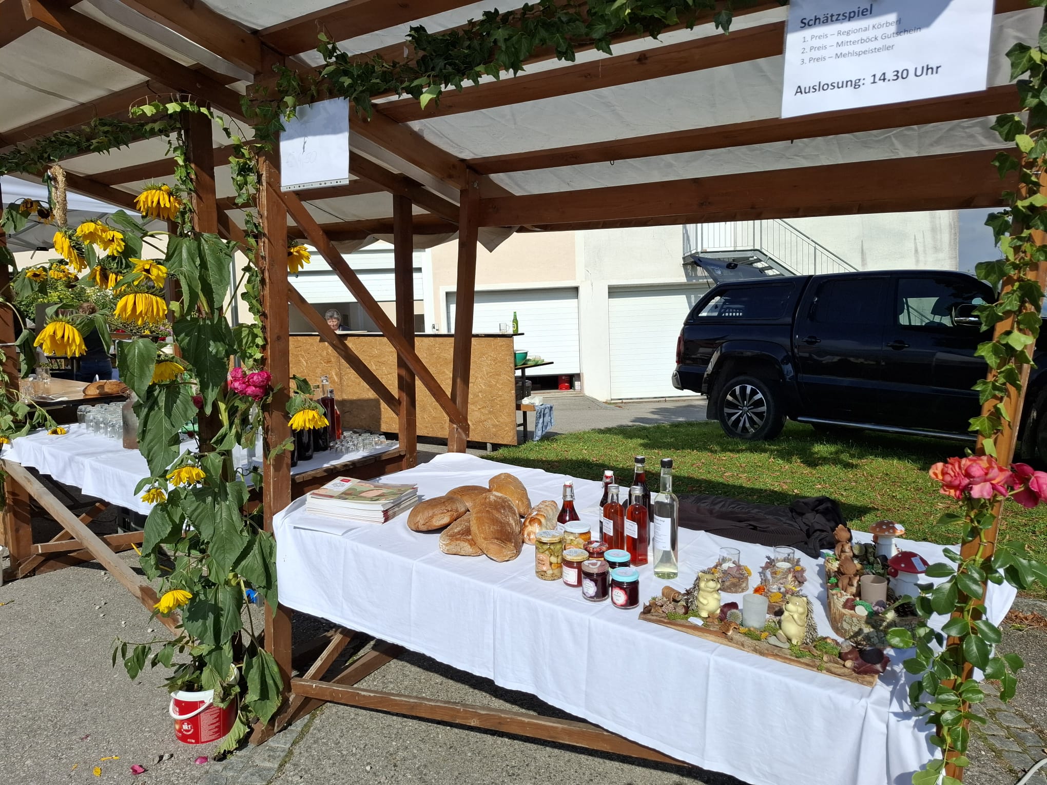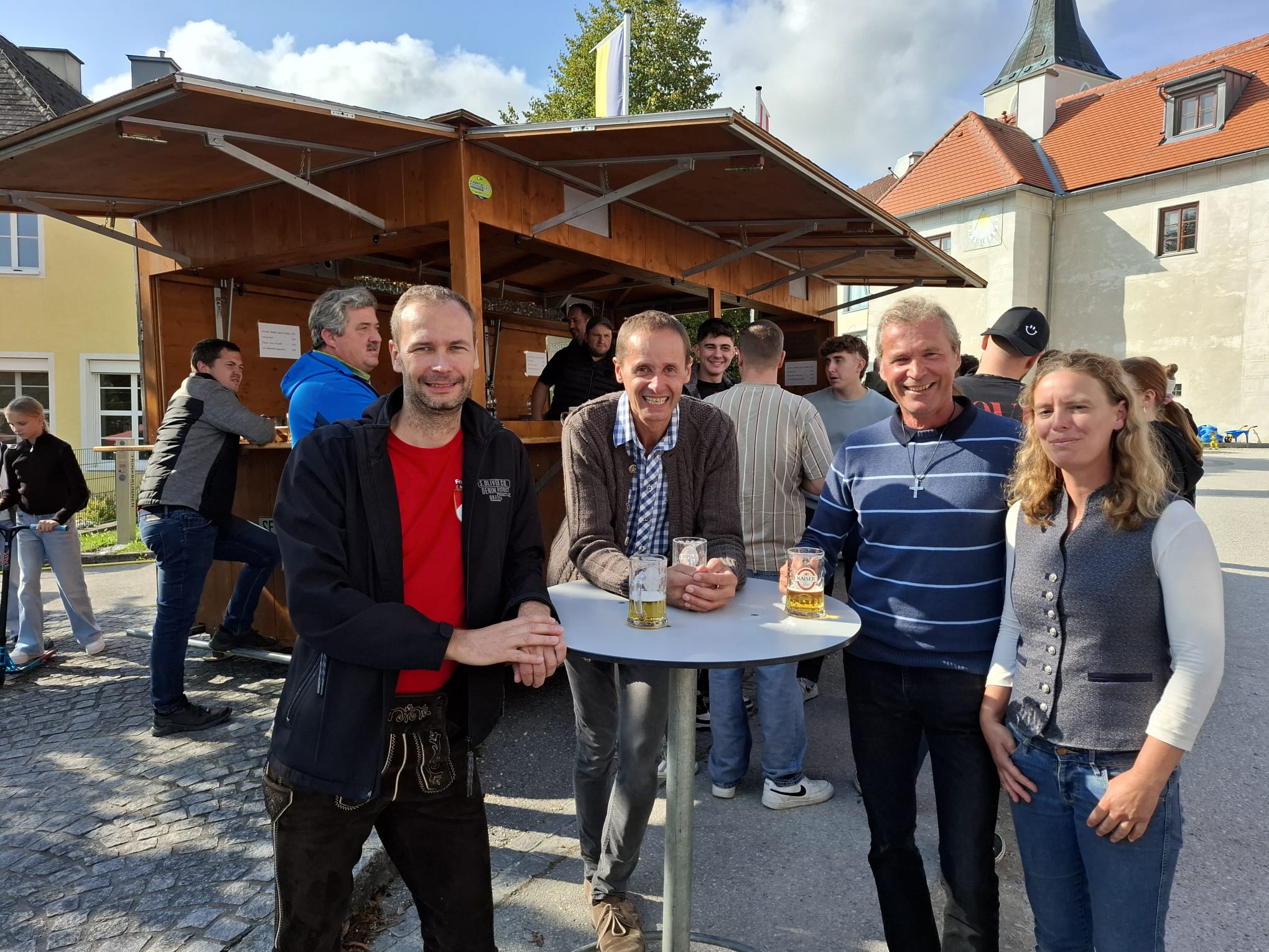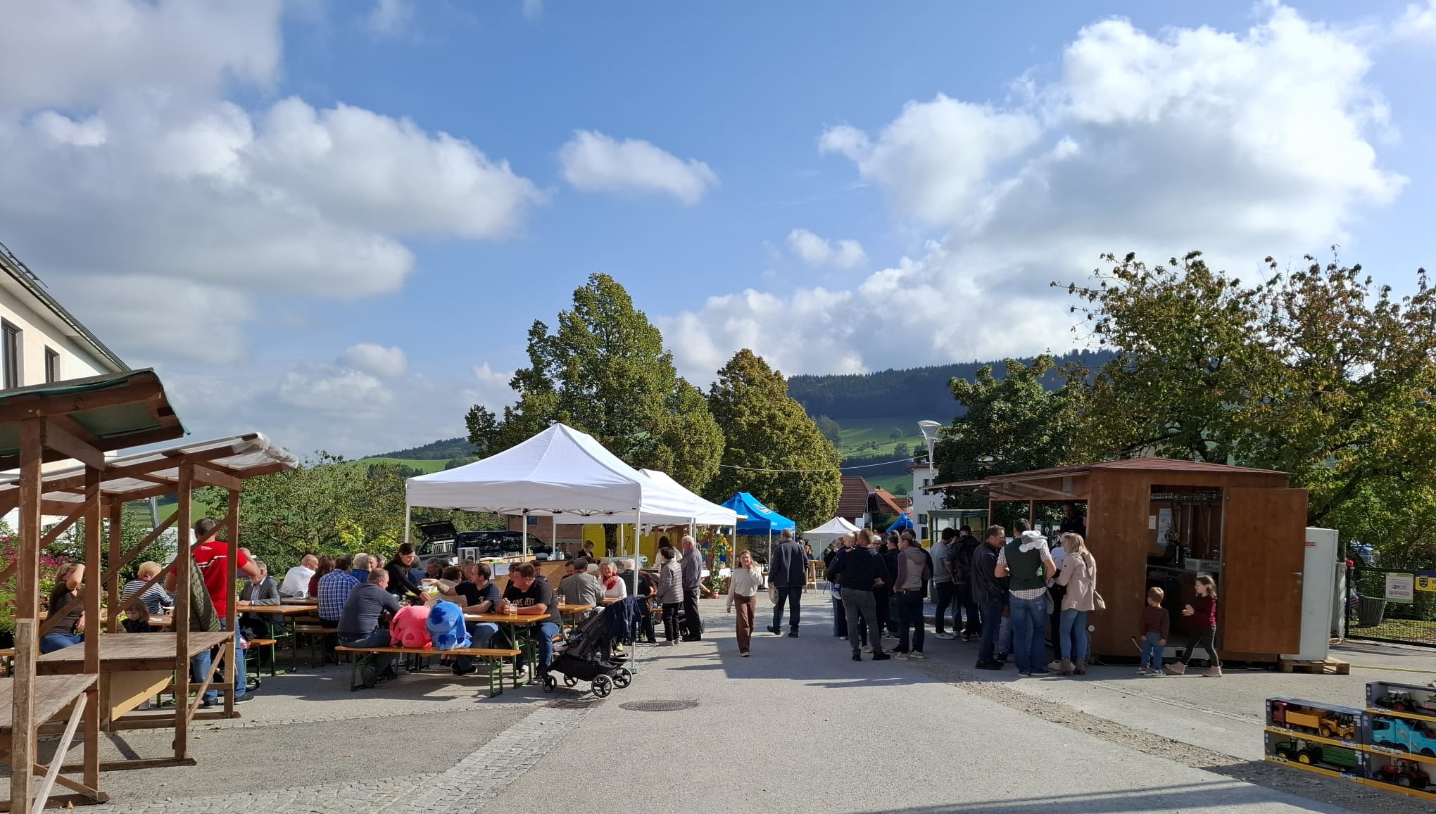 Der beginnende Herbst zeigte sich von seiner freundlichen Seite und so kamen zahlreiche Besucher zum Bauernkirtag, um die köstlichen Schmankerl und Mehlspeisen zu verkosten, die die Bäuerinnen, die Jägerschaft und die Freiwillige Feuerwehr vorbereitet hatten. Vom Spielwarenstand für die Kleinsten bis zu landwirtschaftlichen Großmaschinen, Kleidung und Lederwaren, Kunsthandwerk und Honigprodukten gab es vieles zu besichtigen und zu erwerben. Am Schießstand der Jäger und beim Fußball-Dart konnte man sich auch sportlich betätigen.