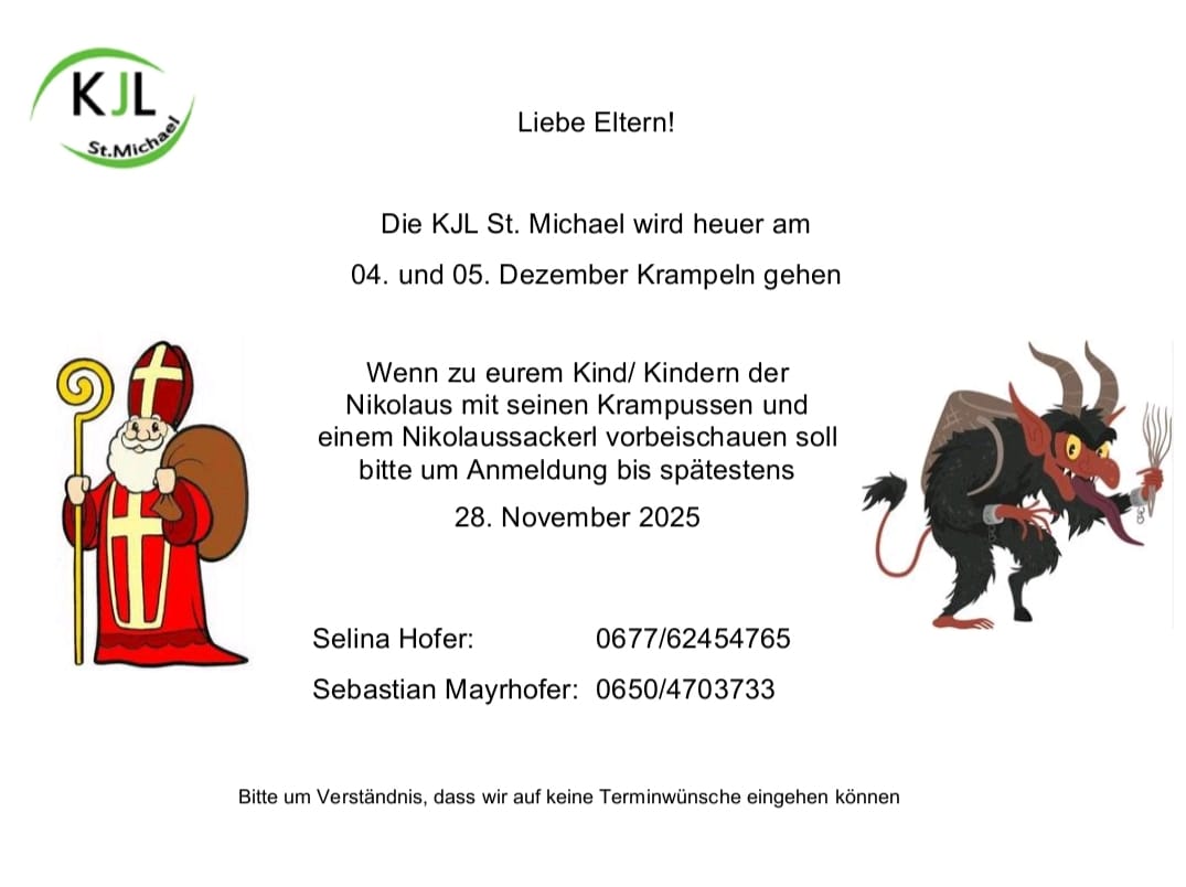 • Es wird laut in St. Michael! Einladung zum Michöna Perchtenlauf am 6. 12. 25