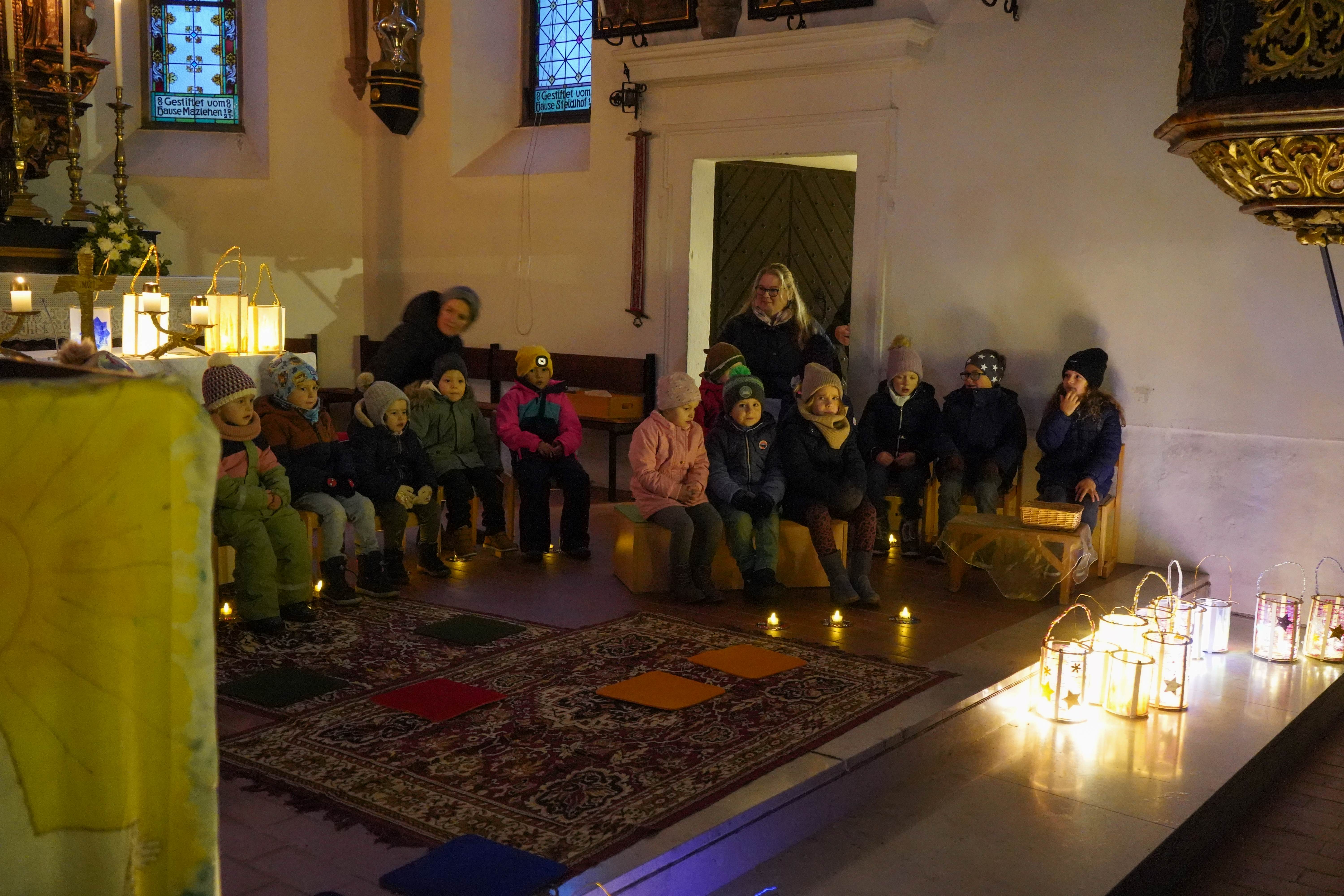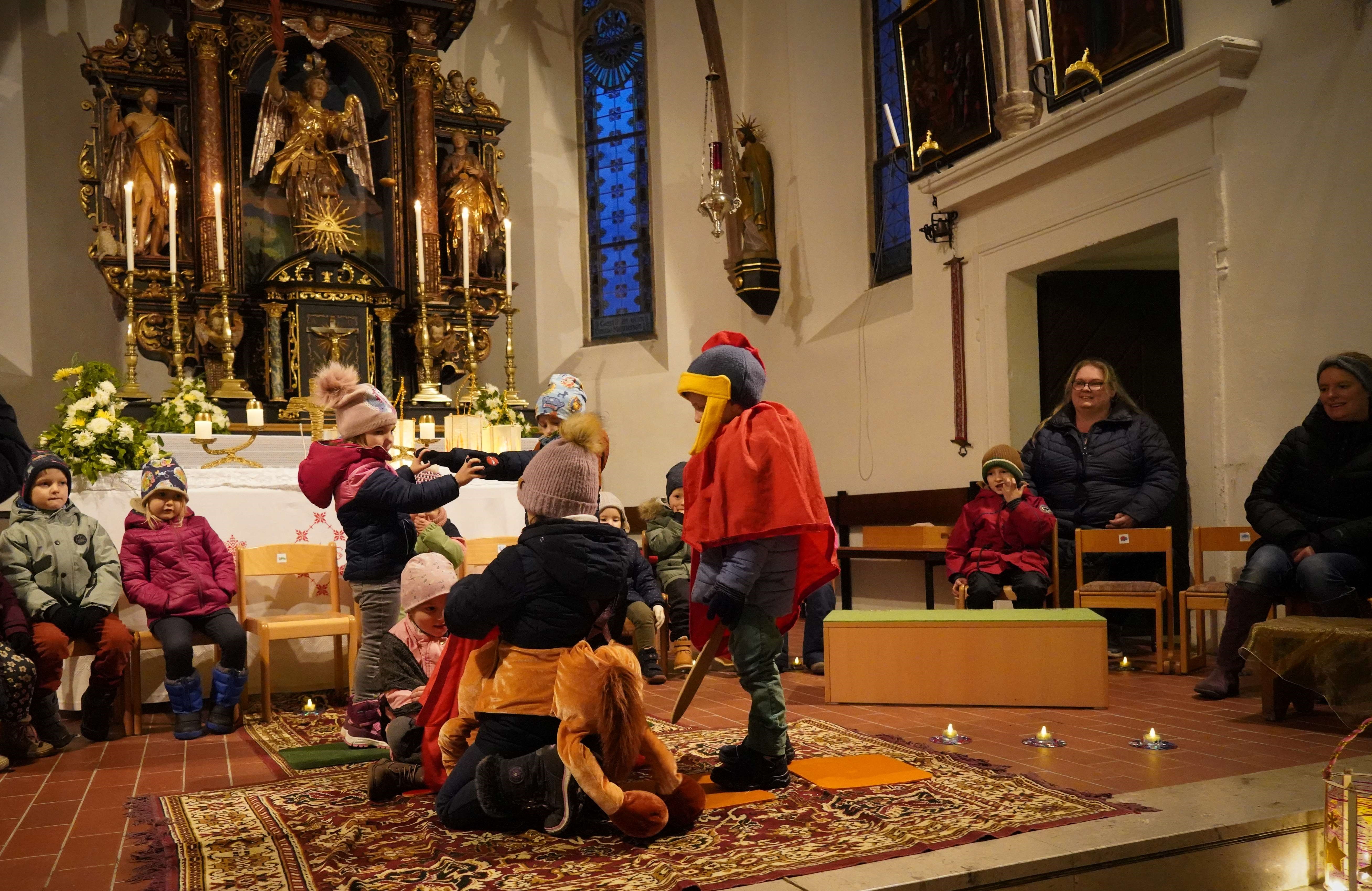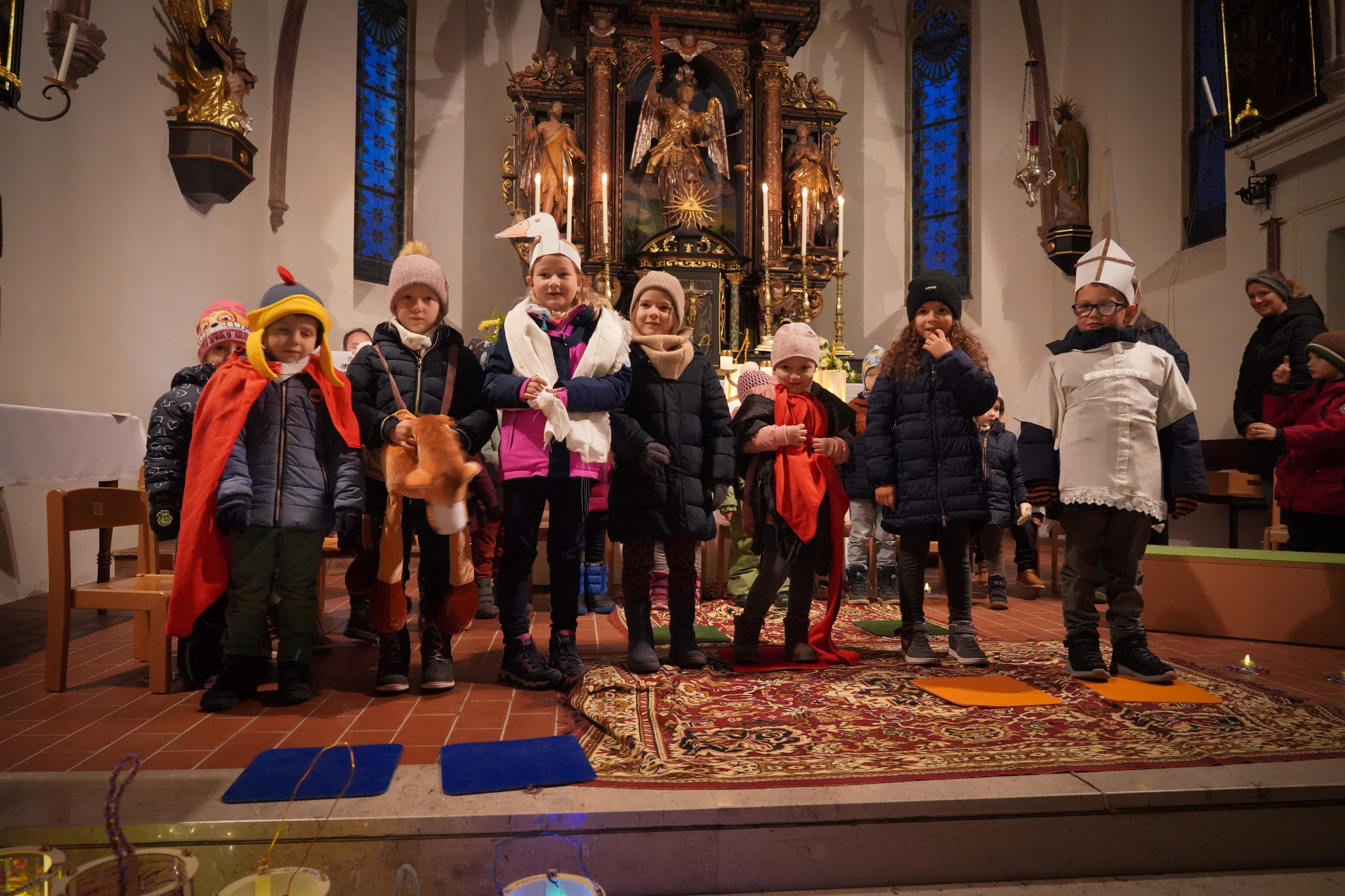 "Ich geh' mit meiner Laterne...", spielten die Trompeter, die die Kindergartenkinder mit ihren bunten, selbstgebastelten Laternen zur Pfarrkirche begleiteten. Dort erinnerten die Kinder in einem von den Pädagoginnen liebevoll vorbereiteten Singspiel an das Leben und Wirken des Hl. Martin und wie wichtig die Nächstenliebe, die Gemeinschaft und das Teilen sind.