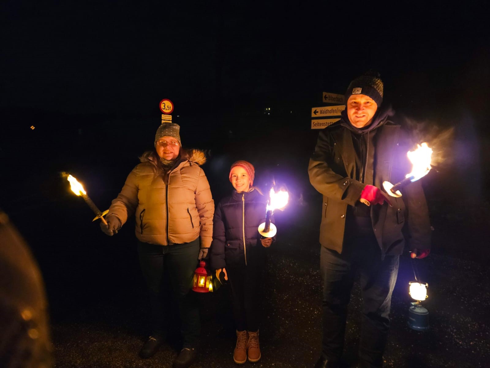 Mit P. Florian, P. Christoph und ihren Eltern wanderten die Ministranten der Pfarre St. Michael von Seitenstetten nach Biberbach. Fackeln erhellten ihren Weg zur wunderschönen, lebensgroßen Krippe im Pfarrhofgarten von Biberbach. Zur Stärkung gab's am Ziel im Pfarrhof Biberbach noch Punsch und Kekse.