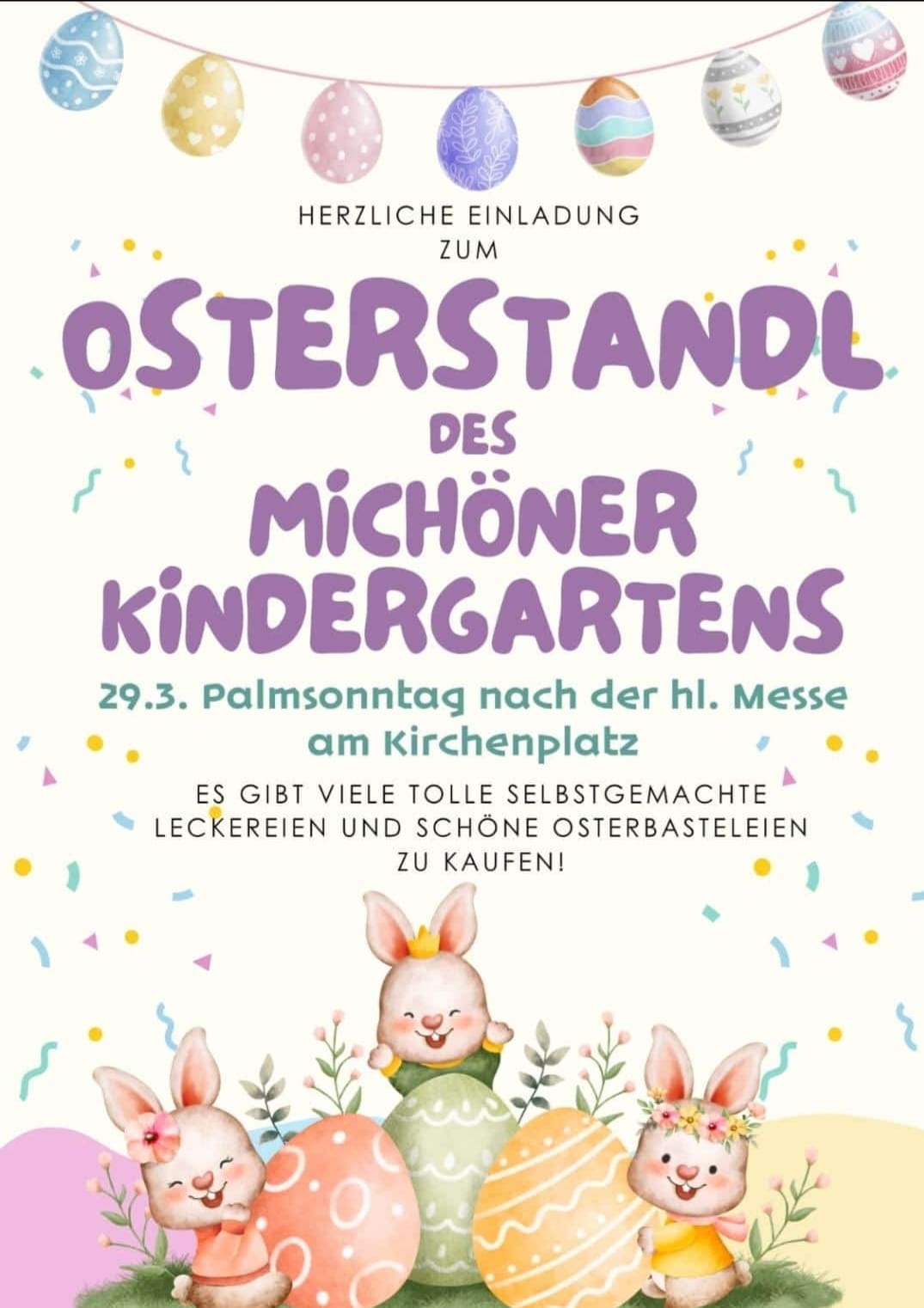 Selbstgemachtes ist am schönsten - Herzliche Einladung zum Osterstandl des Kindergartens am Palmsonntag