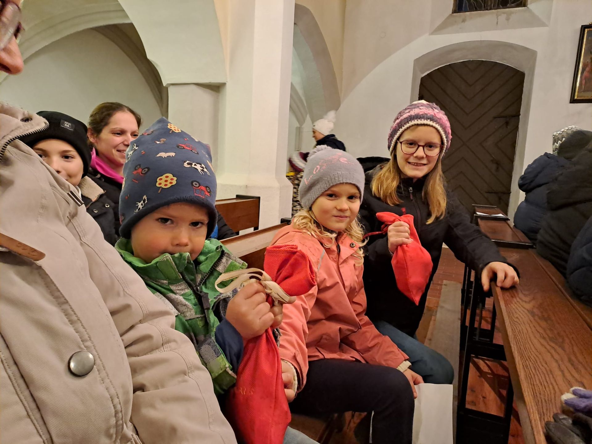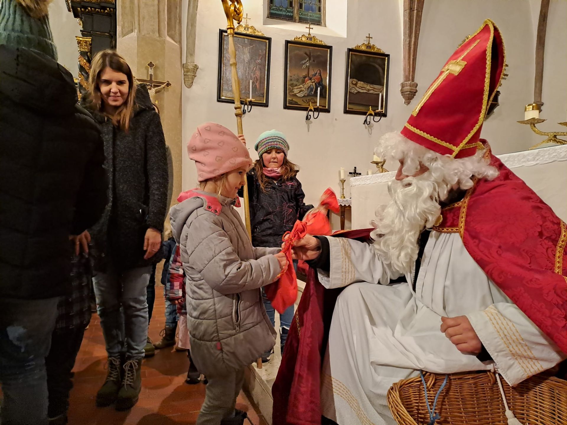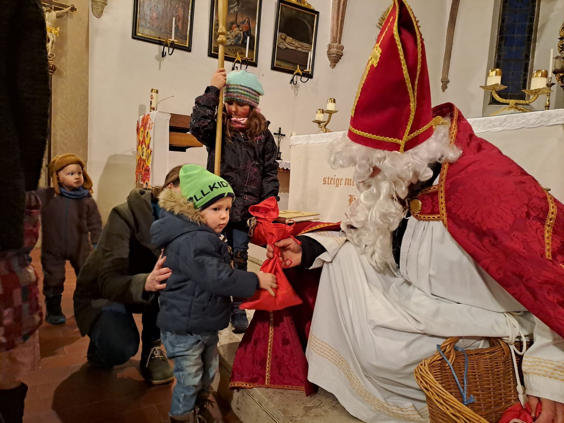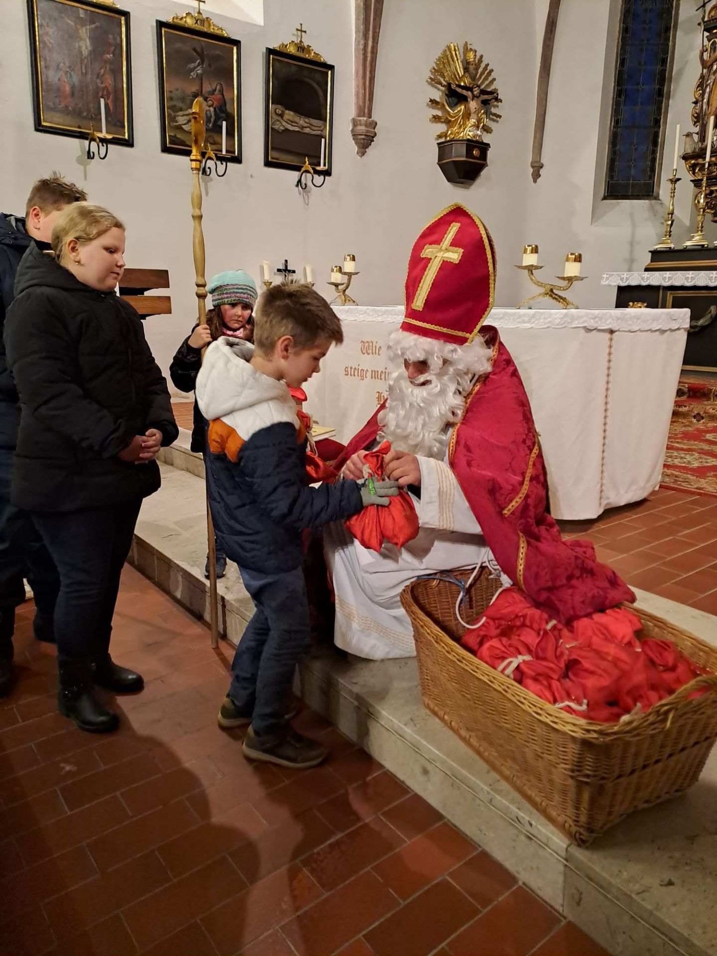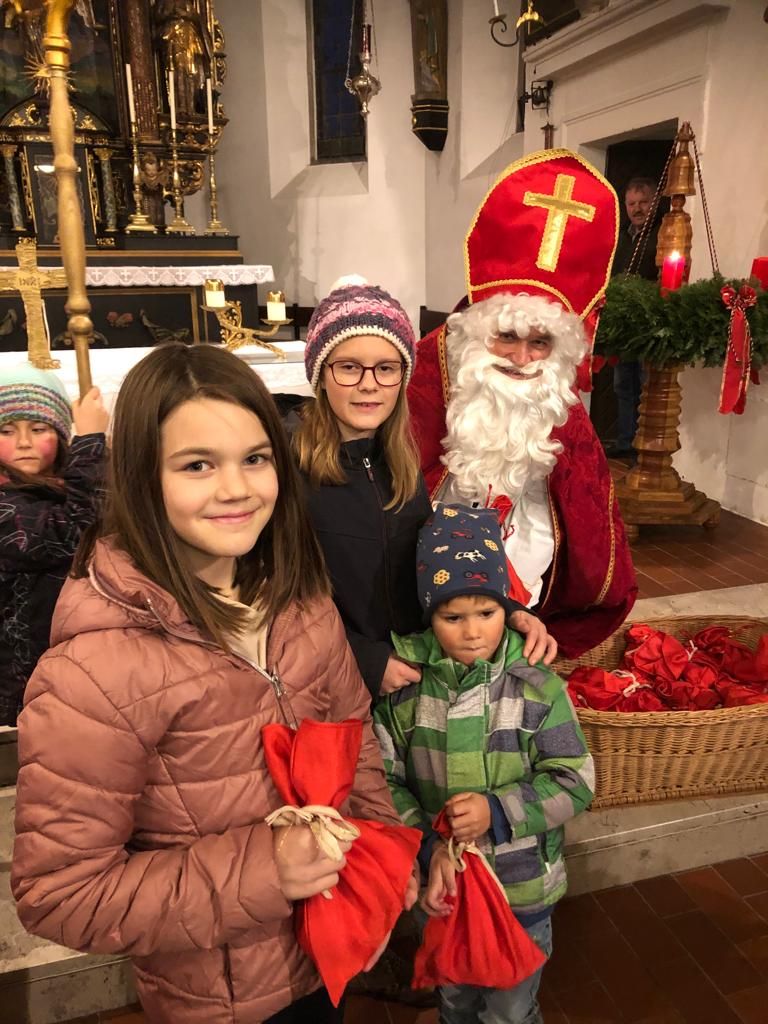 Weil es in St. Michael so viele brave Kinder gibt, nahm der Nikolo die weite Reise auf sich und traf am 5. Dezember in der Pfarrkirche ein. Dort verteilte er seine Geschenke an alle Kinder, die schon sehnsüchtig auf ihn gewartet hatten.