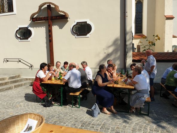 Nach einem gemeinsamen Mittagessen hielt Pater Franz eine Hl. Messe in der Basilika und danach lud er - ebenfalls schon Tradition - auf ein Glaserl Wein in den wunderschönen Pfarrhof.