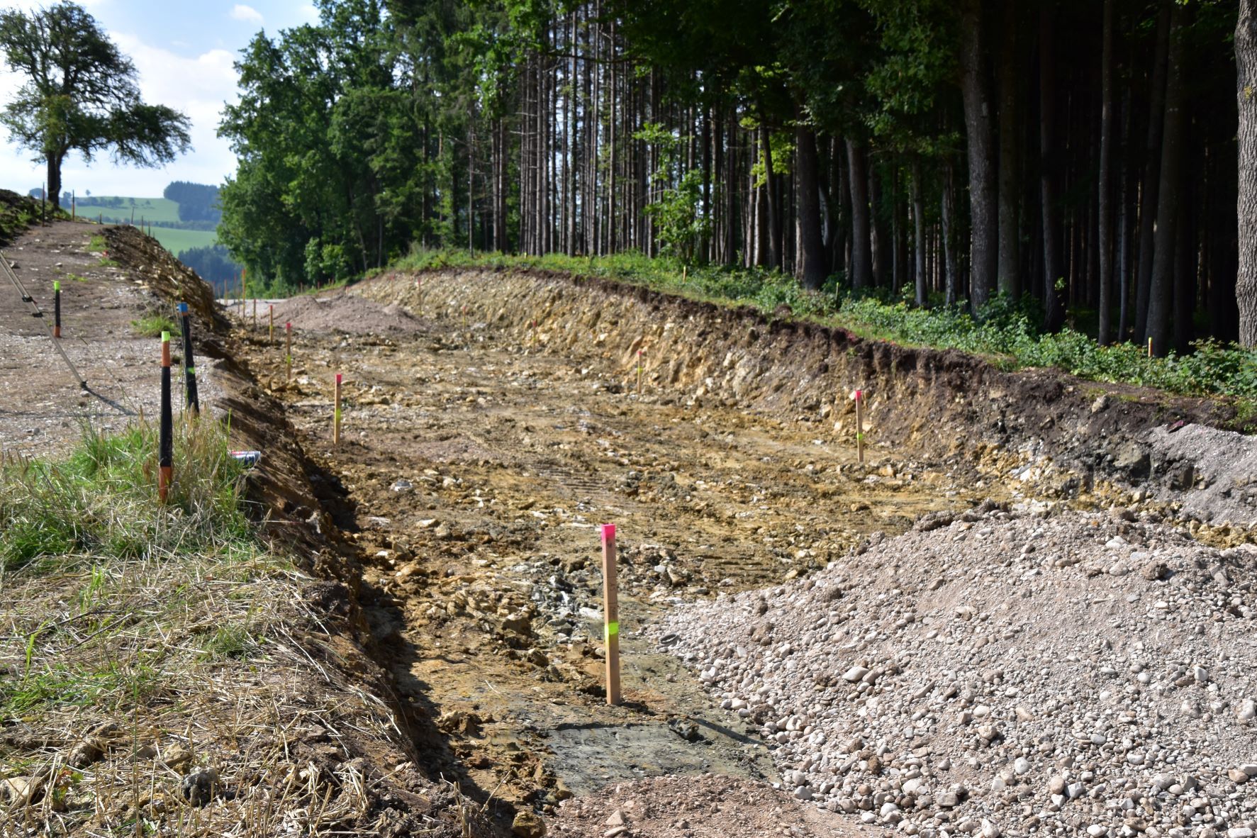 Das schwierigste Teilstück des Straßenneubaues ist geschafft. Das extrem harte Gestein beim Dorfmoarwald konnte erfolgreich abgetragen werden.