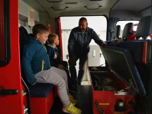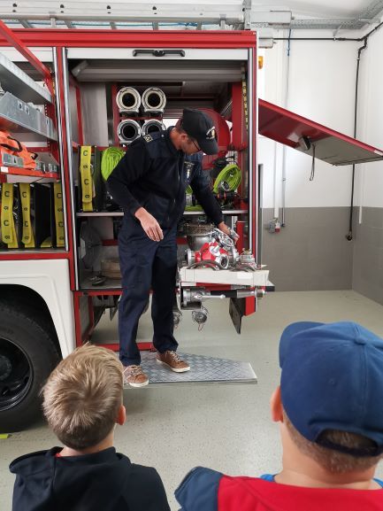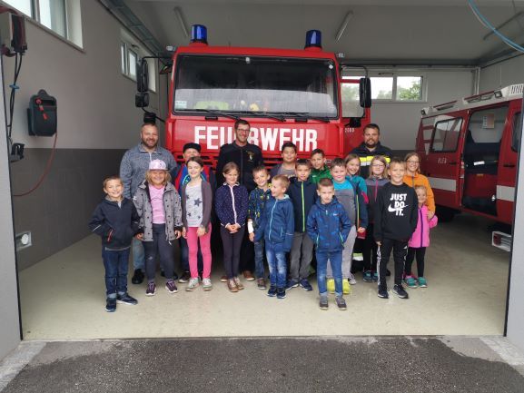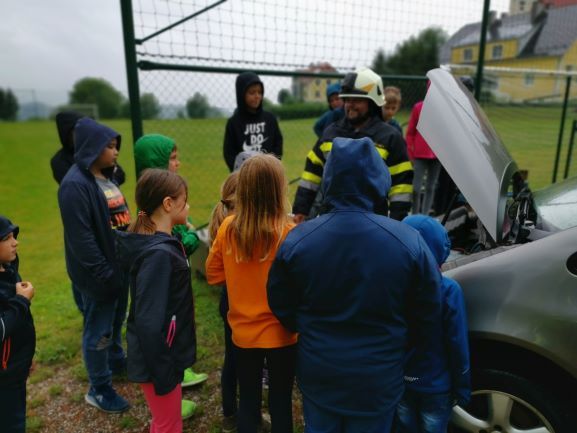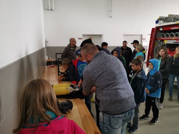 HV Martin Hinterleitner und Kommandant Egon Frühwirt erklärten den Kindern viele verschiedene Ausrüstungsgegenstände, die von den Kindern gleich begeistert ausprobiert wurden.