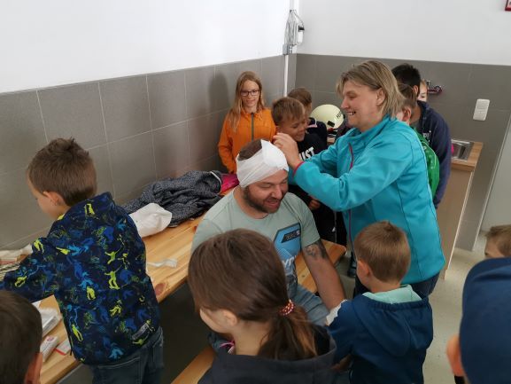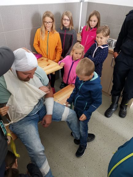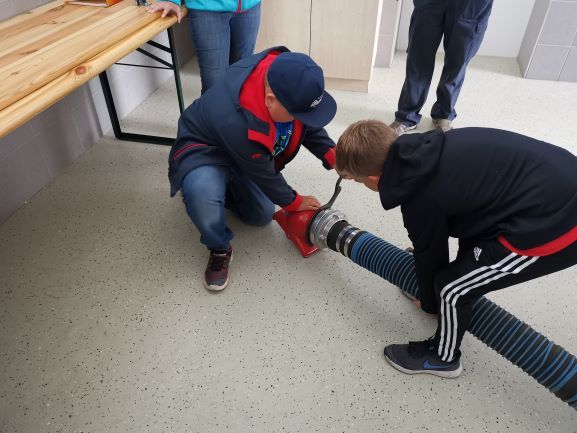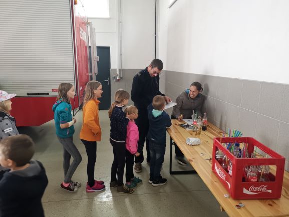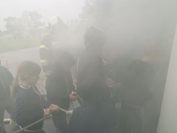 Tatkräftige Mithilfe der Kinder bei der Atemschutzübung mit dramatischer Rauchentwicklung.