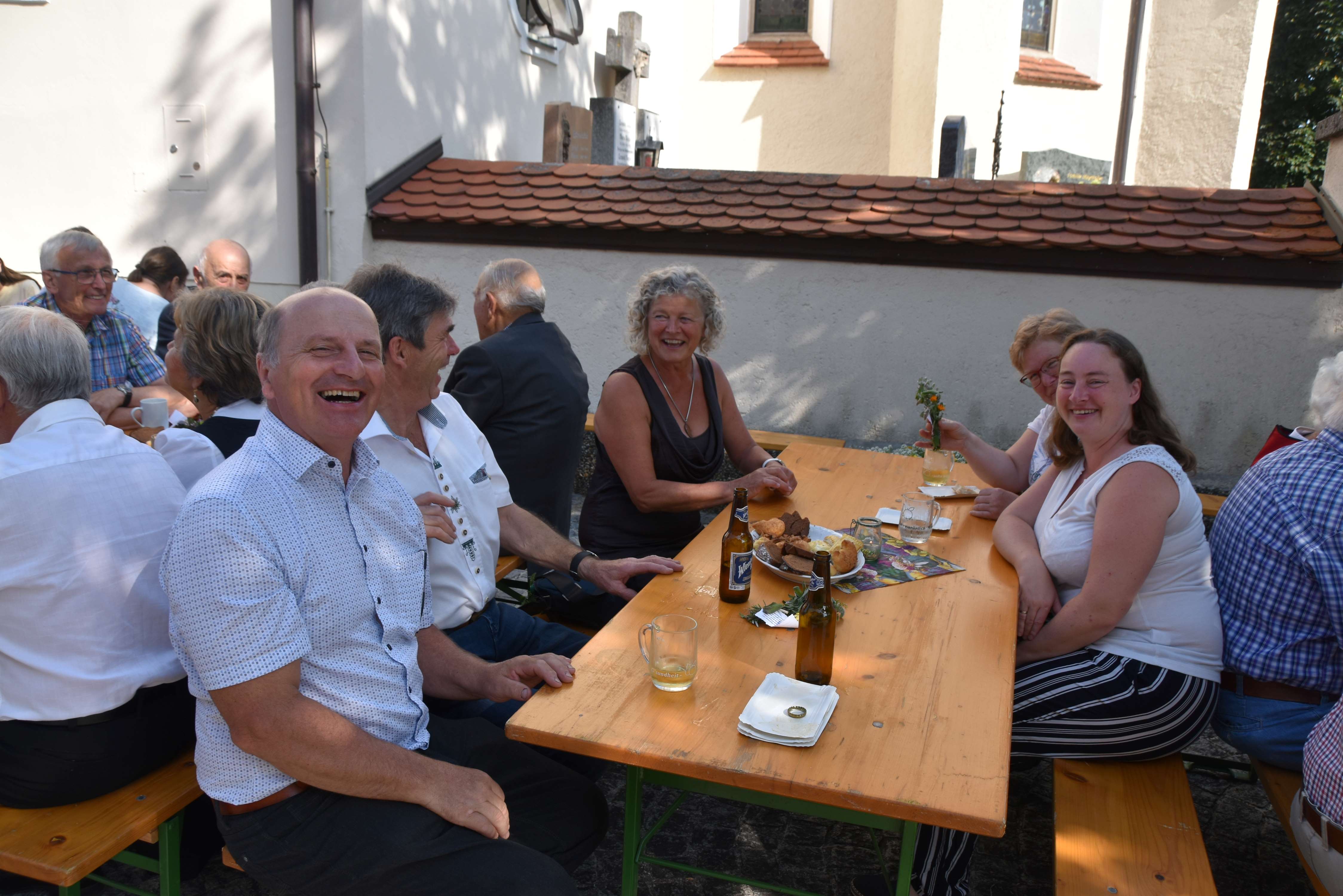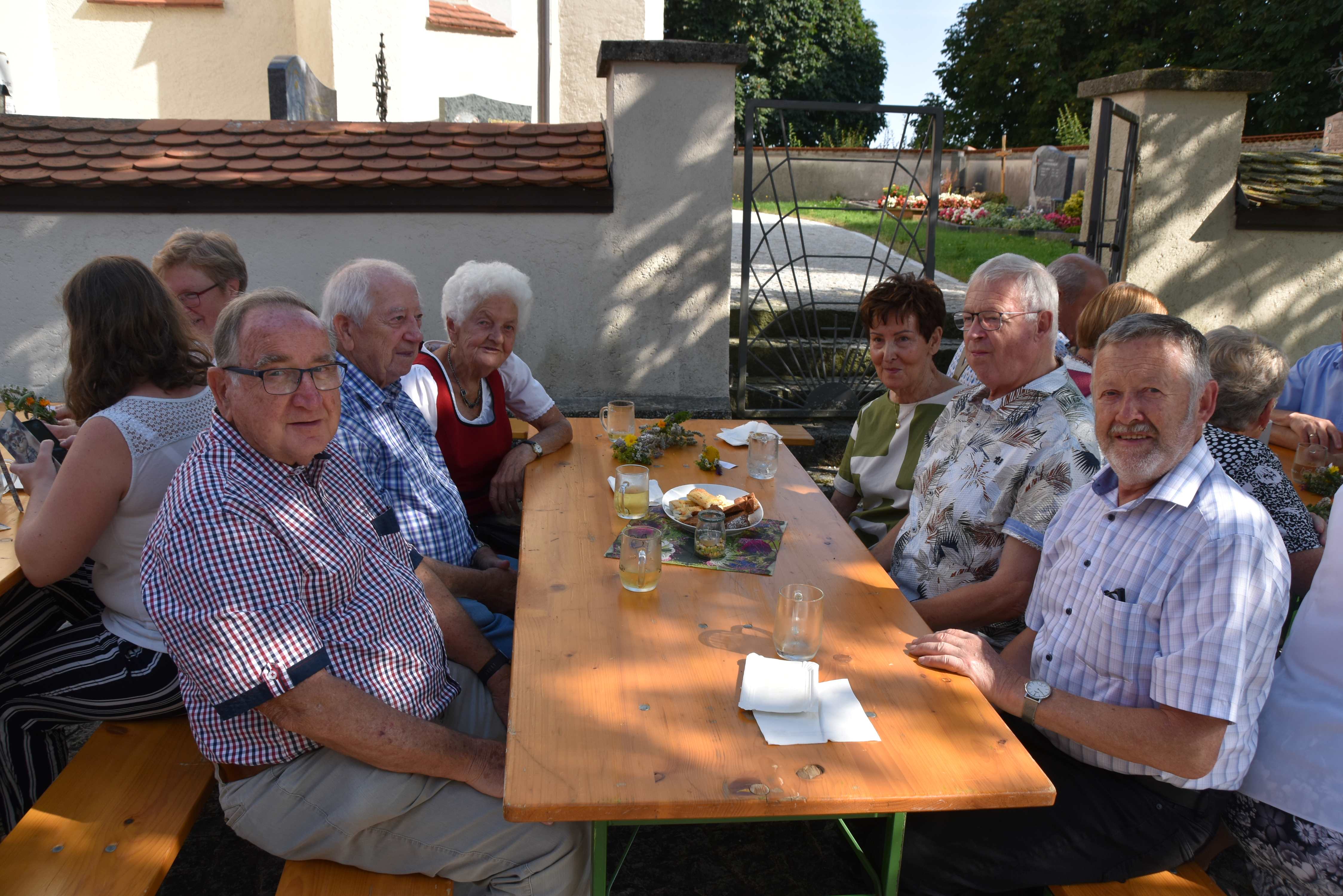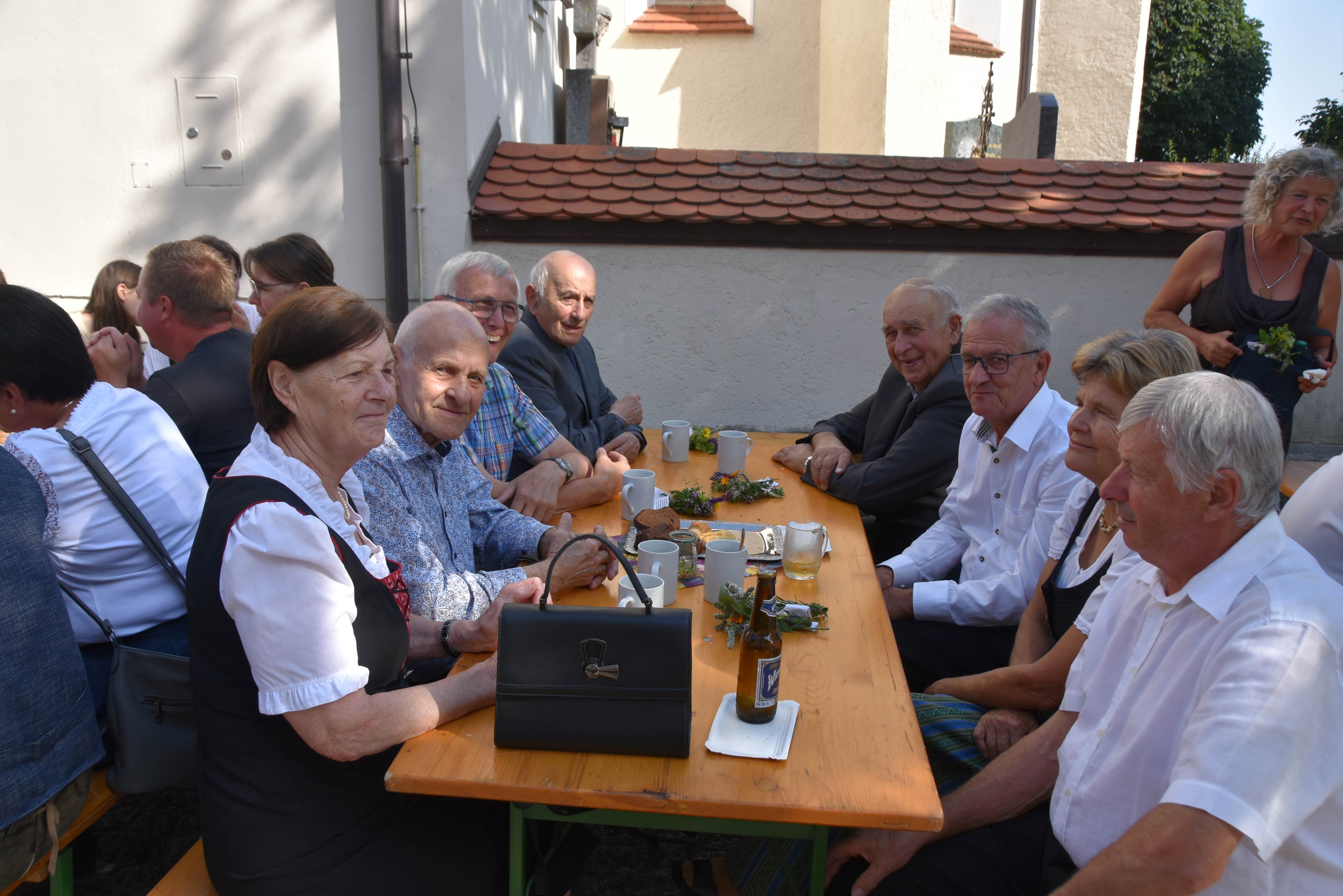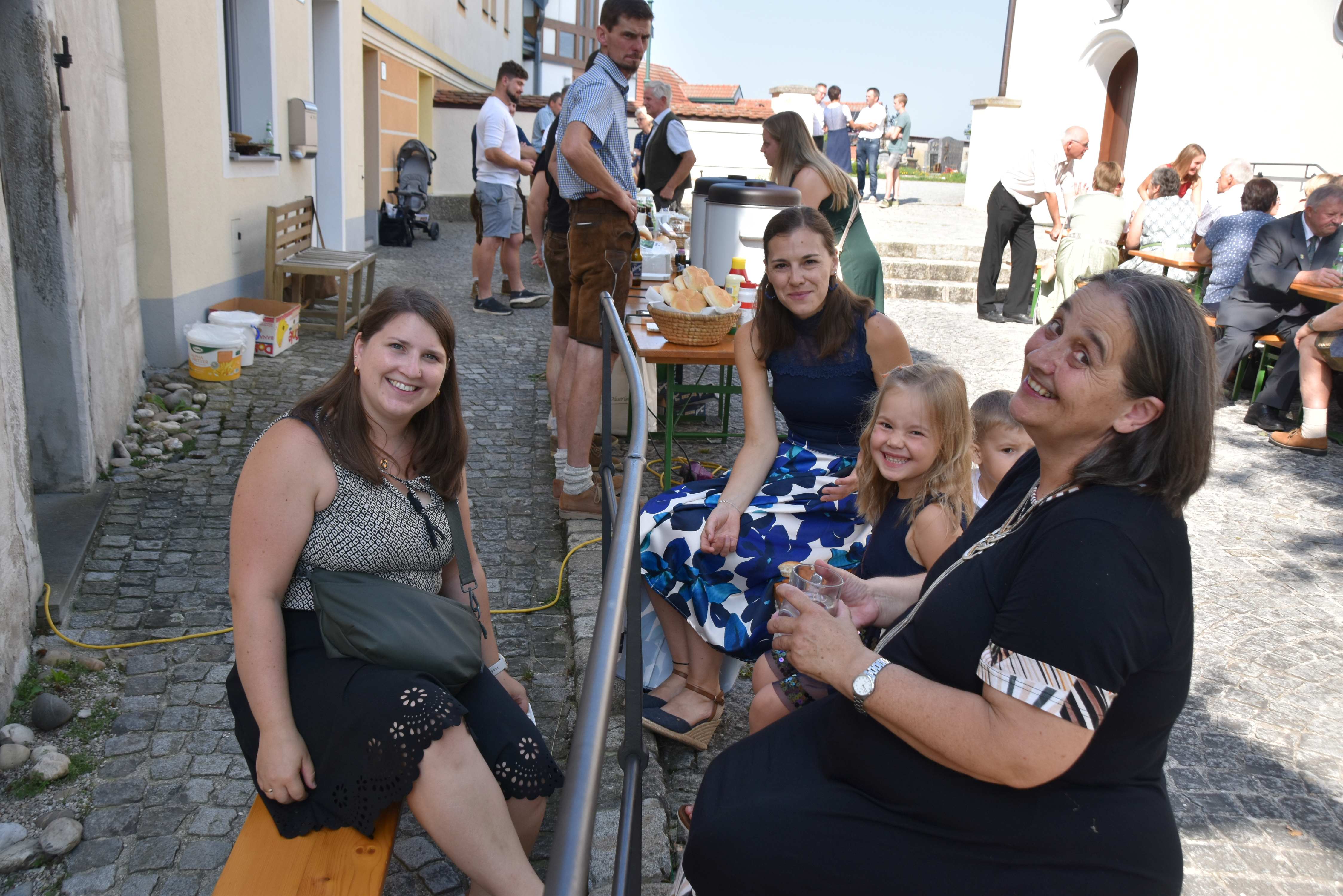 Auch heuer kamen die Messbesucher am Dirndlgwandsonntag in ihrem schönsten Trachtengwand zur Hr. Messe, von Annika und anschließender Agape der Dorferneuerung. Heuer waren die feschen Kleider aber versteckt unter warmen Jankern, der Wind brachte schon einen kühlen Gruß vom Herbst. Trotzdem blieben viele noch bei der Agape, um bei Getränken und Snacks ein wenig zu plaudern.