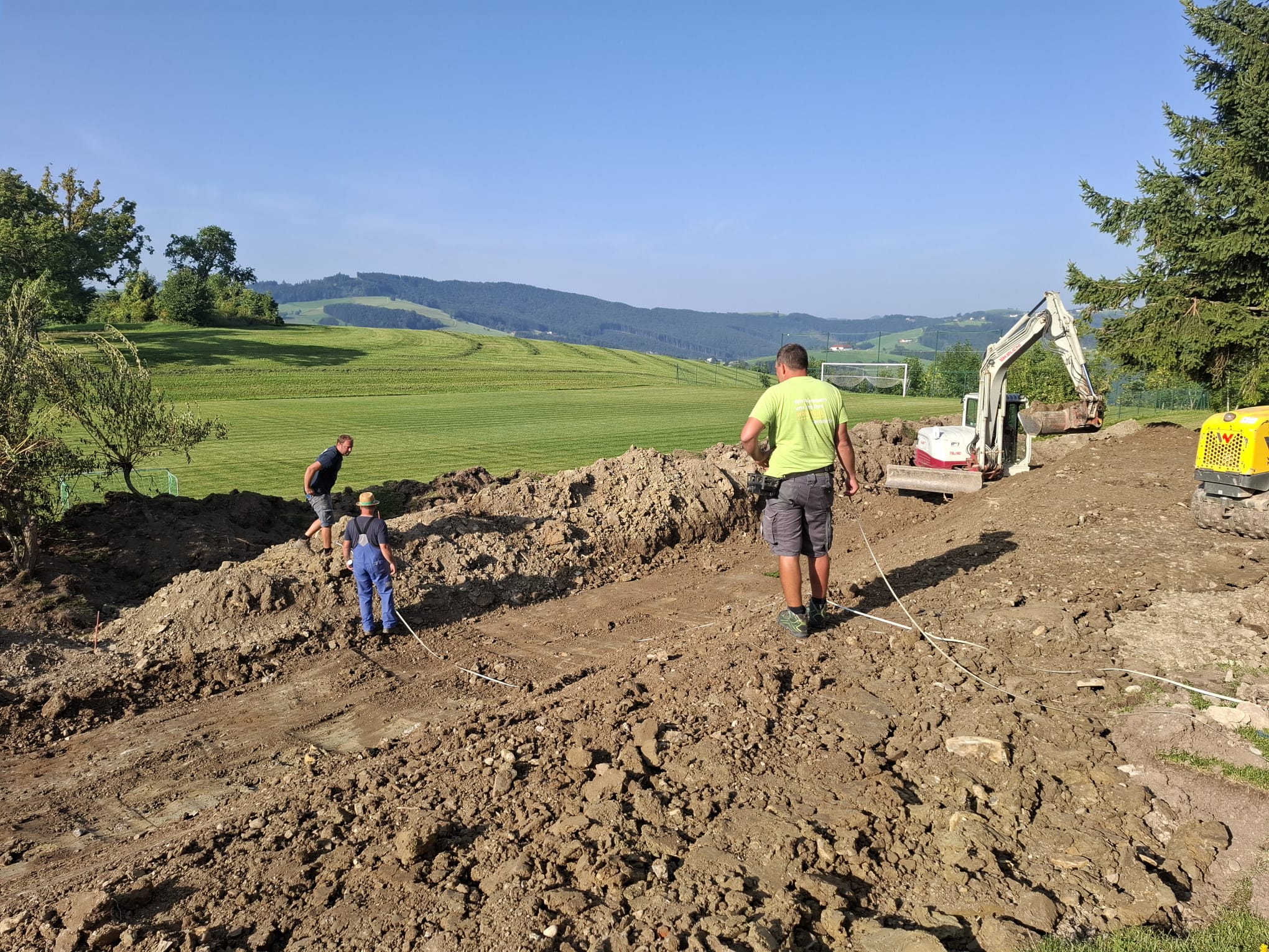 Was fleißige Mitglieder am 9.8. trotz sengender Sommerhitze begonnen haben, schreitet jetzt mit den Baggerarbeiten zügig voran.