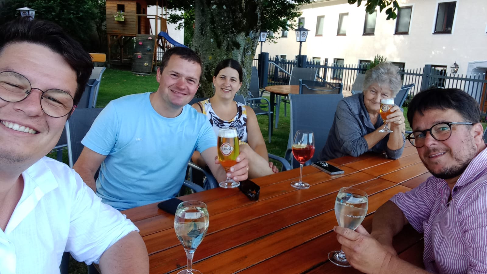 Nach diesem erlebnisreichen Tag gab`s für die verbliebenen Erwachsenen in kleiner Runde noch einen Ausklang in Mitterböcks gemütlichem Gastgarten.