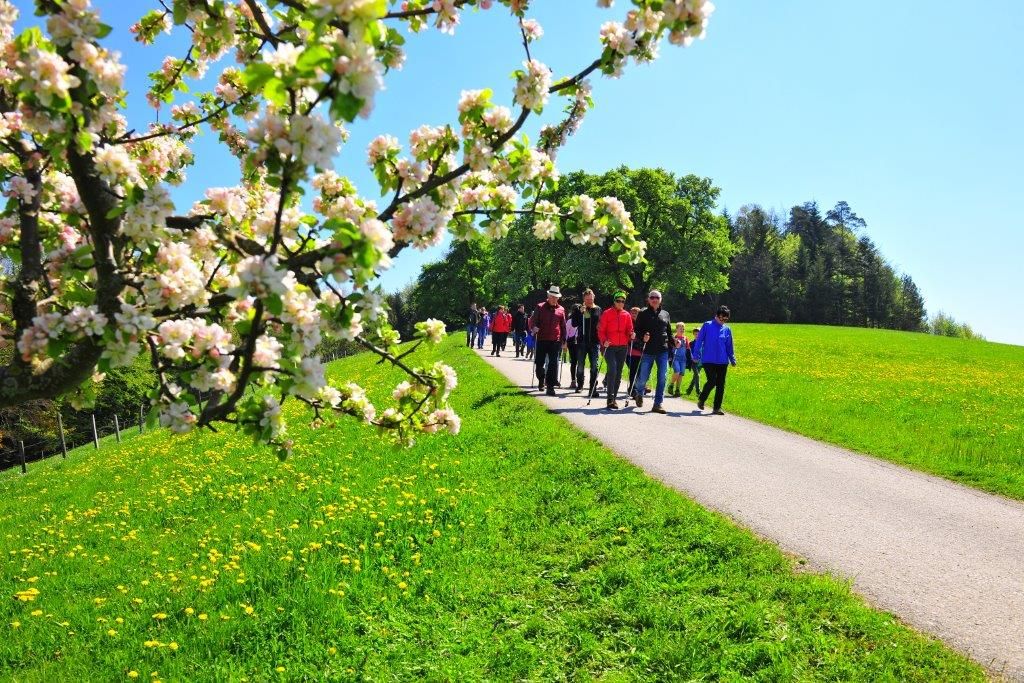 Die beeindruckende Baumblüte der Mostapfel- und birnbäume ließ so manchen Wanderer staunen und war Motiv für zahlreiche Fotos.