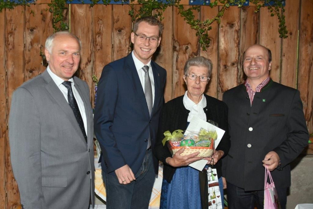 Bürgermeister Johannes Heuras, Ortsvorsteher Josef Friedl und Ortsbauernrat Josef Streisselberger gratulierten der Jubilarin recht herzlich.