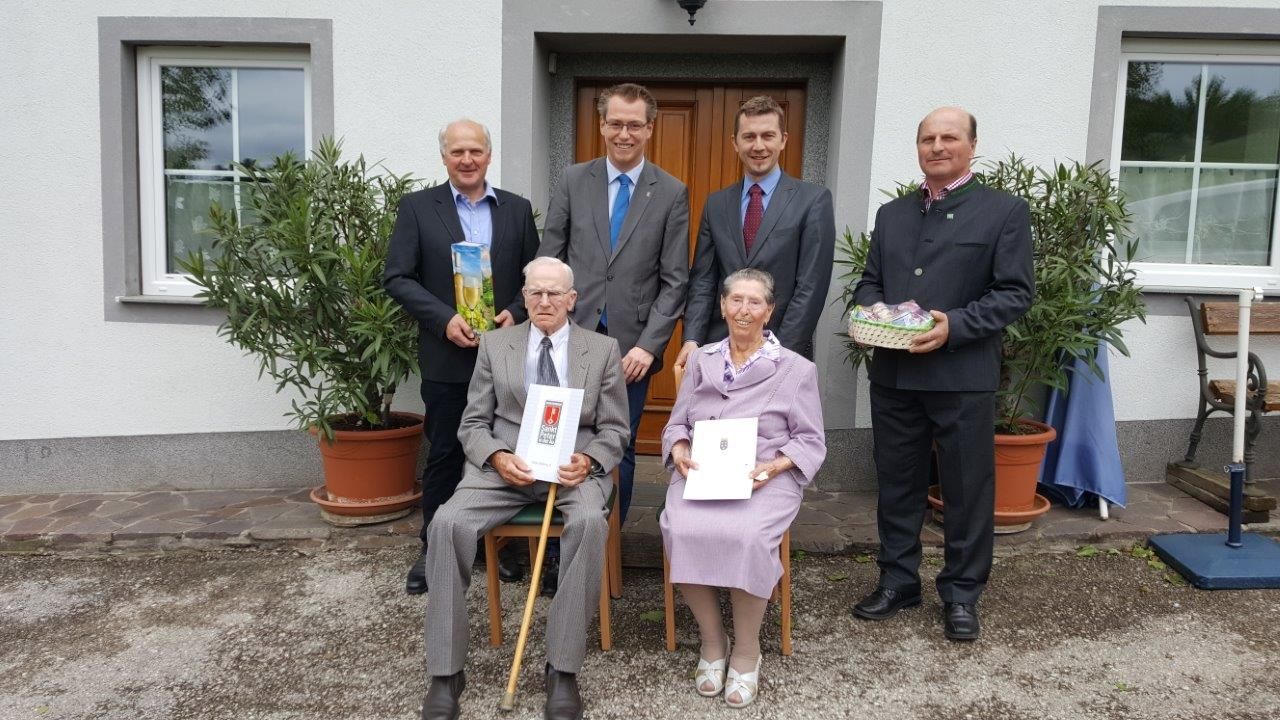 Am Mittwoch, den 25. Mai feierten Maria und Johann Grosshagauer ihre eiserne Hochzeit. Unter der Gratulantenschar waren Bürgermeister Johannes Heuras, Ortsvorsteher Josef Friedl, BH Stellvertreter Leopold Schalhas und OB Obmann Josef Streisselberger.