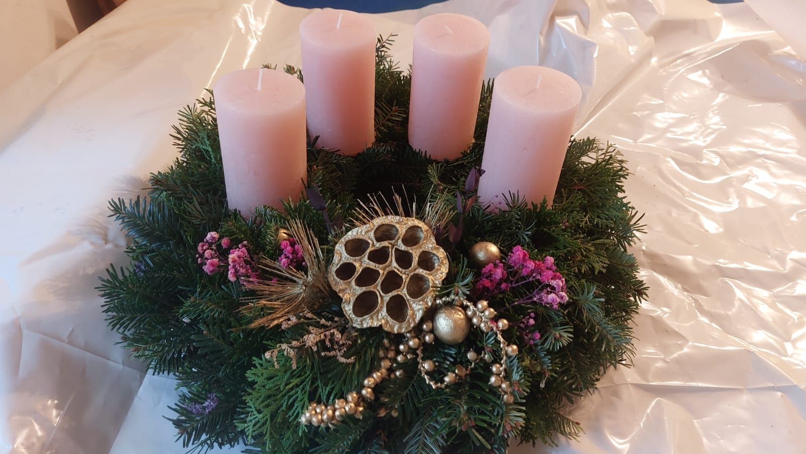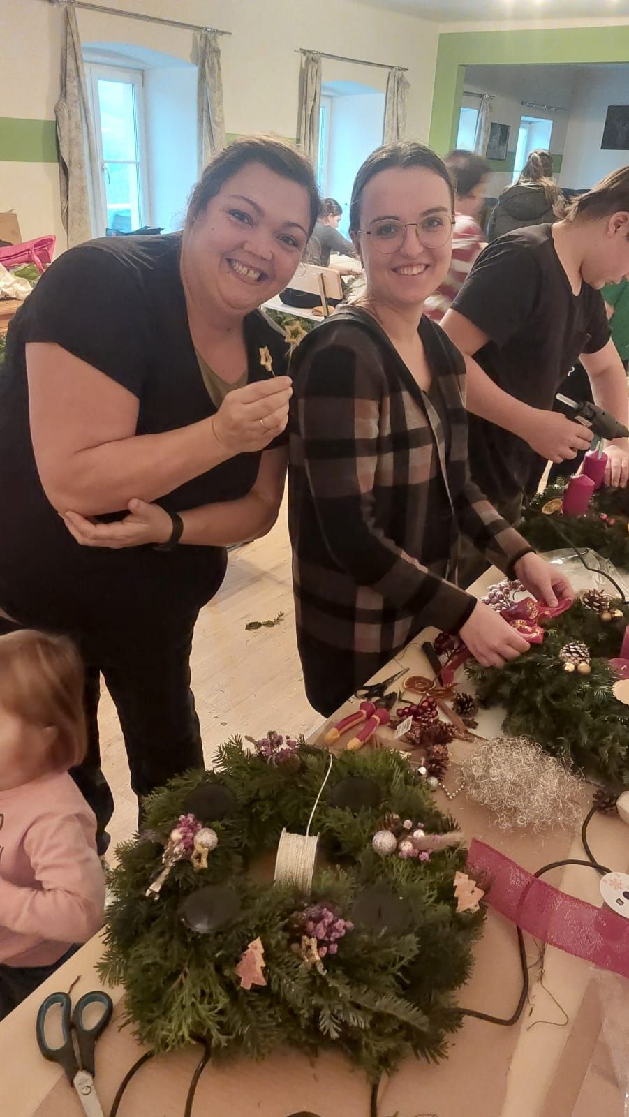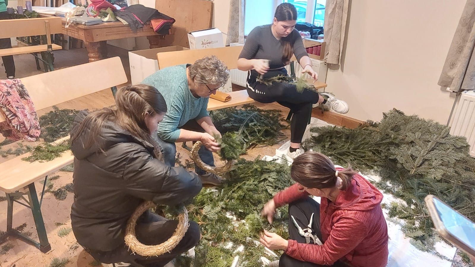 Herzlich bedanken sie sich auch bei allen Mitarbeitern, die mit Spaß und großer Freude geholfen haben, die schönen Adventkränze und Gestecke herzustellen.