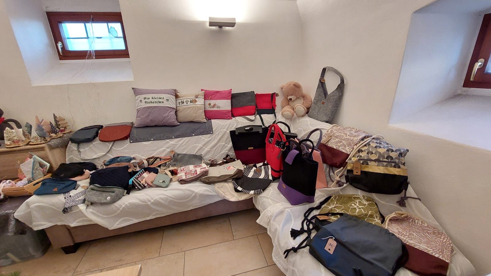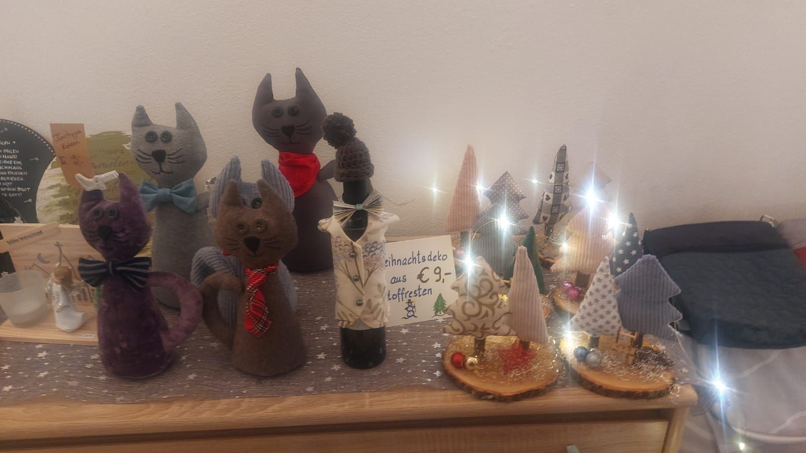 Neben Adventkränzen werden auch Liköre und kleine Basteleien zum Verkauf angeboten.