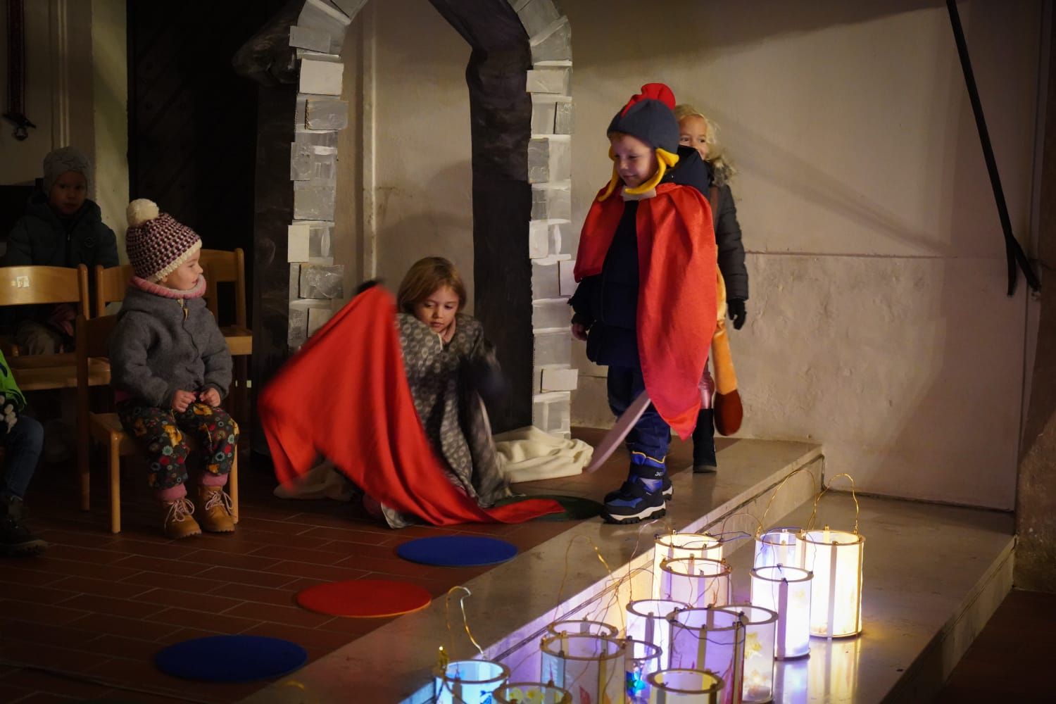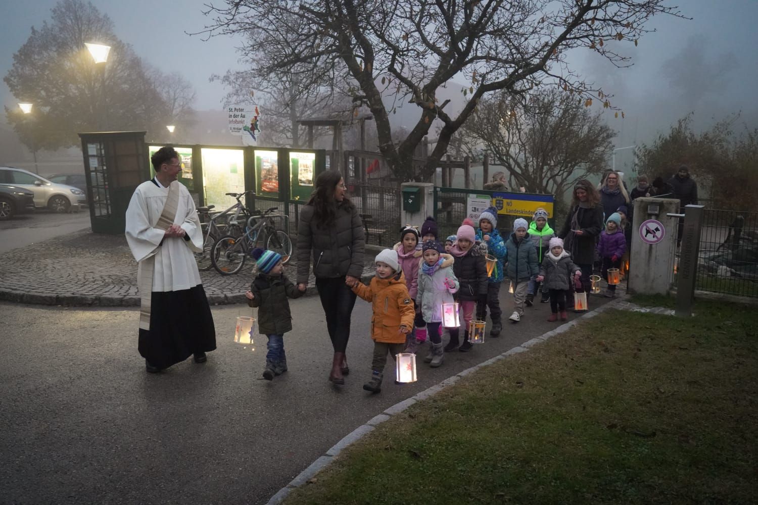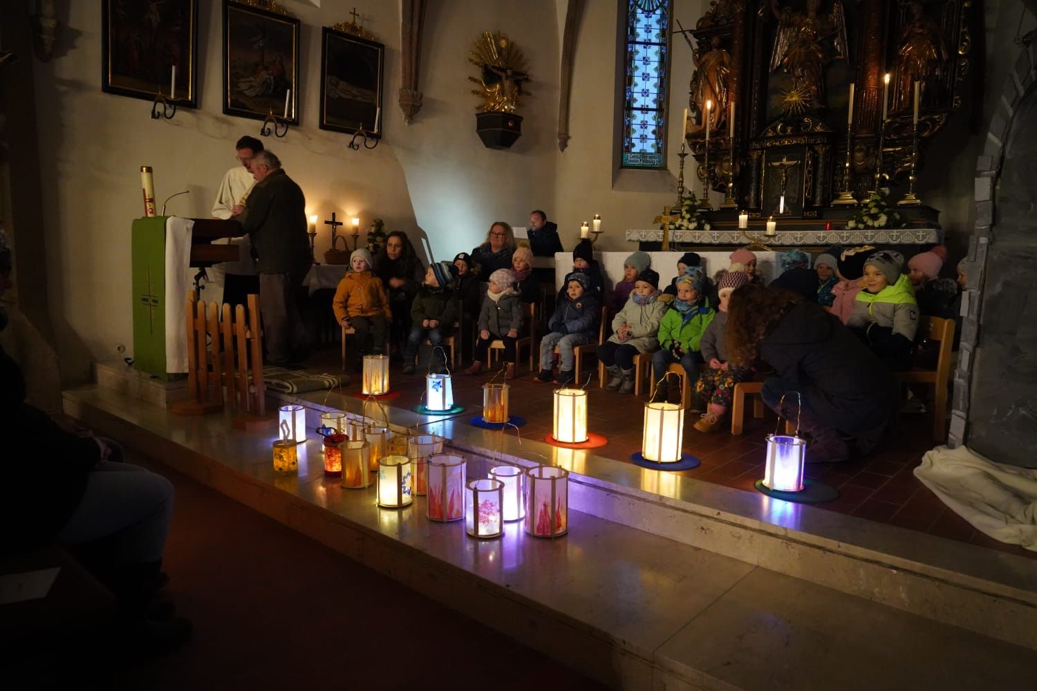 Mit ihren bunten Laternen zogen die Kindergartenkinder zur Pfarrkirche, wo schon viele Menschen warteten, um mit ihnen das Fest des Heiligen Martin zu feiern. Mit Tänzen, Liedern und einem Schauspiel über das Leben des Heiligen erinnerten die Kinder daran, wie wichtig das Teilen ist.