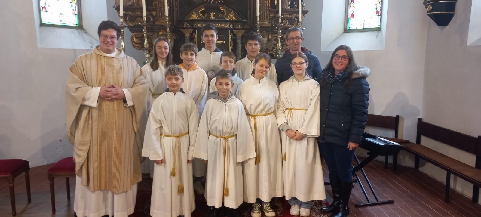 Am 23.11. 2024 verabschiedete sich die Pfarrgemeinde von den scheidenden Ministranten. P. Christoph bedankte sich im Namen der Pfarre recht herzlich für den Einsatz und die Zeit, die die Jugendlichen dem Dienst in der Pfarre gewidmet hatten.
