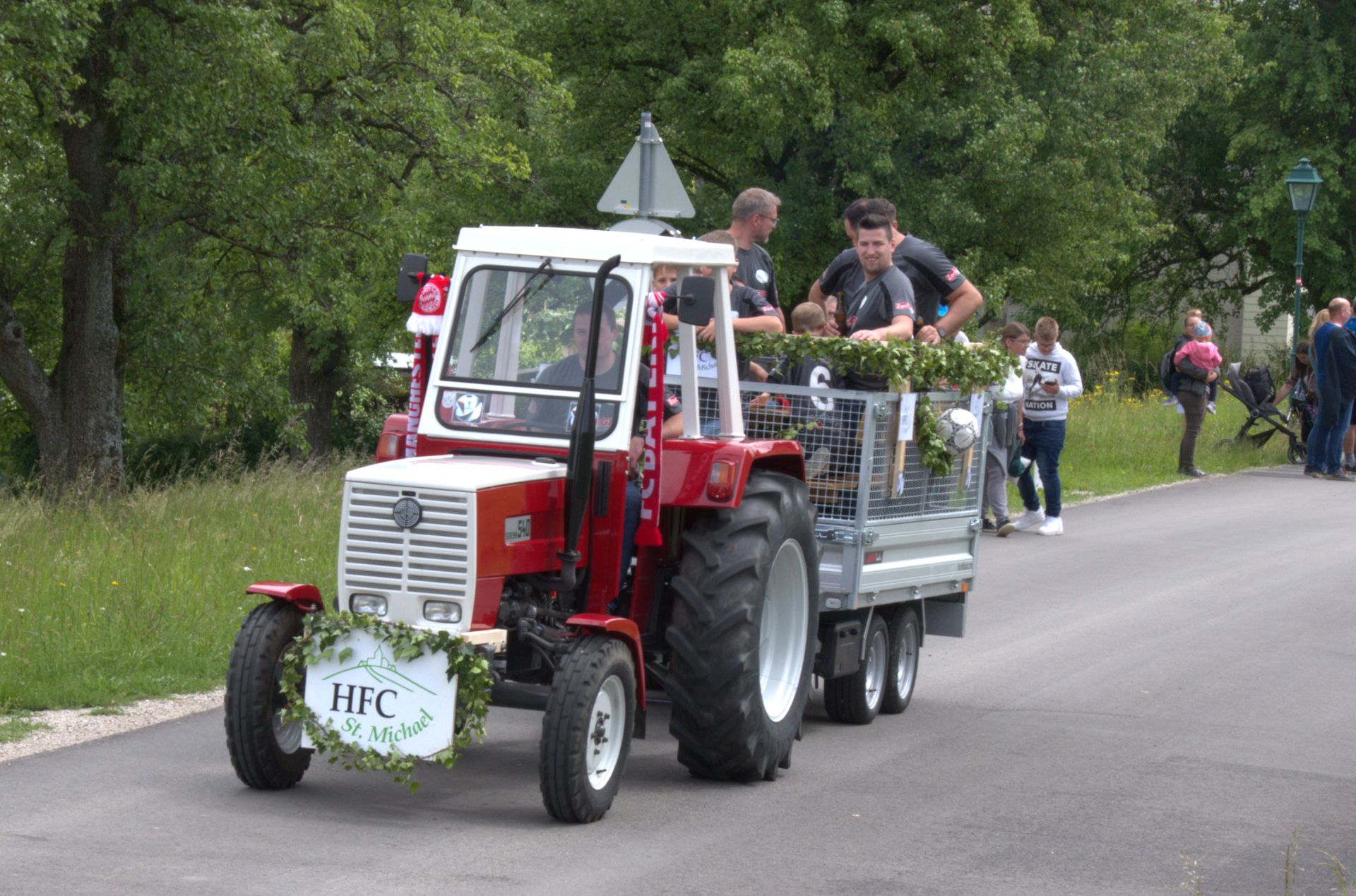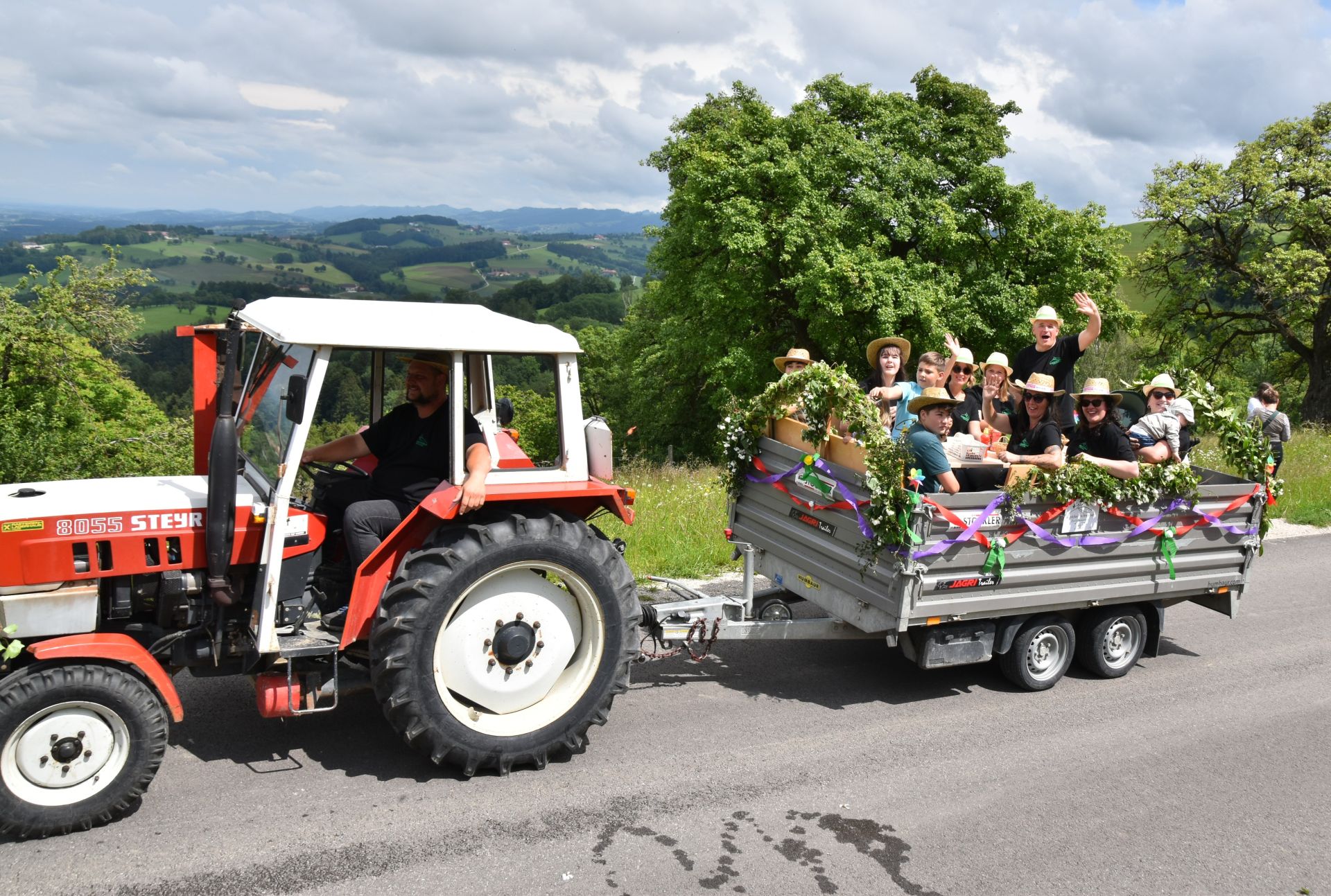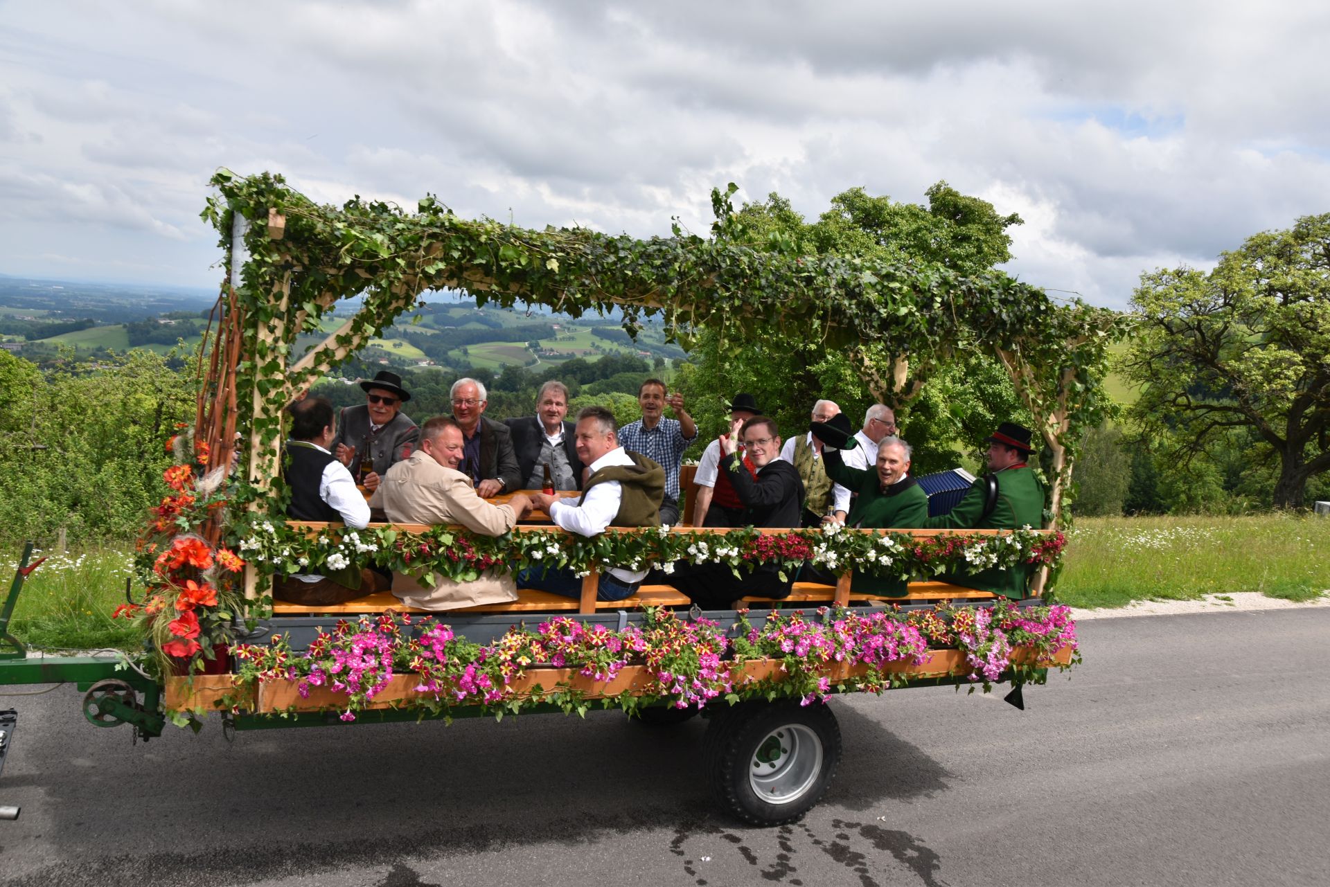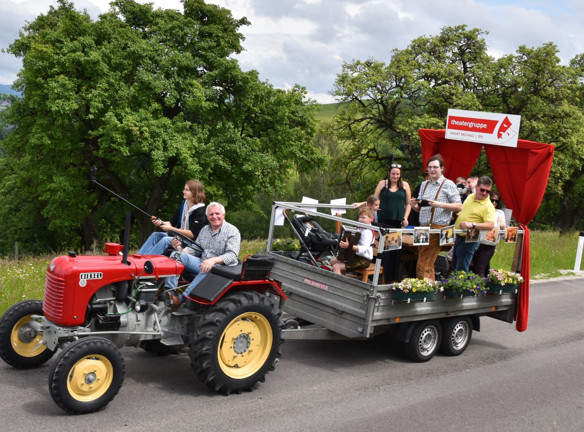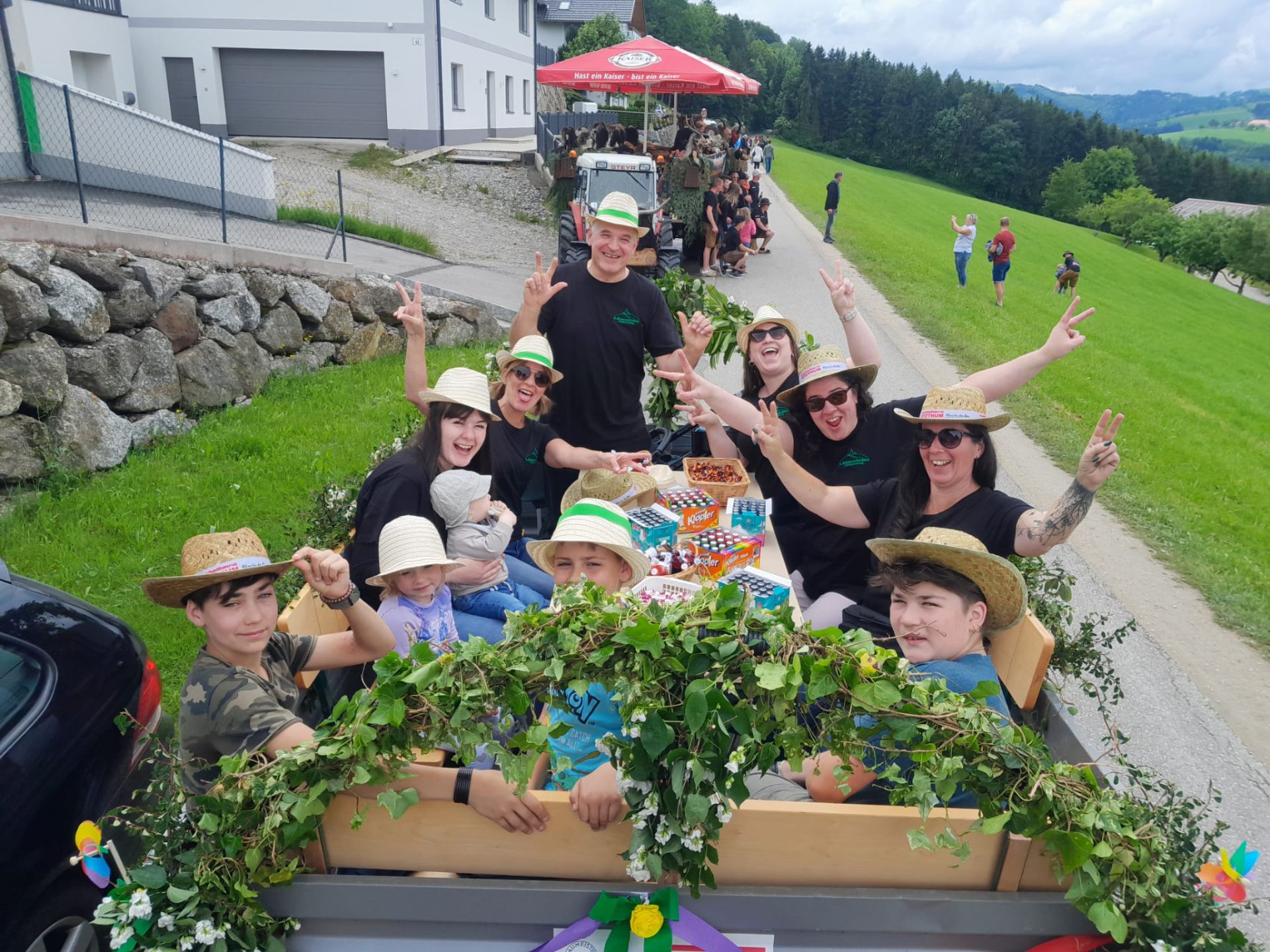 Unter den vielen teilnehmenden Vereinen war auch die Dorferneuerung St. Michael mit einem prächtig geschmückten Wagen und viel guter Laune mit dabei.