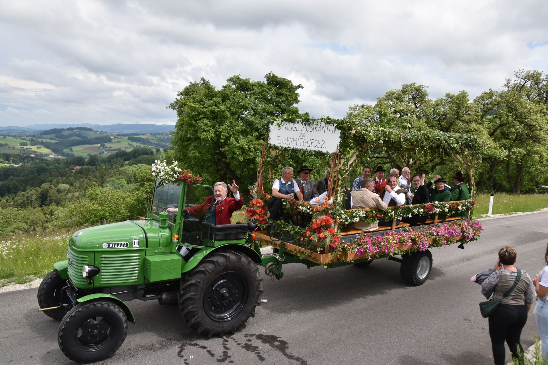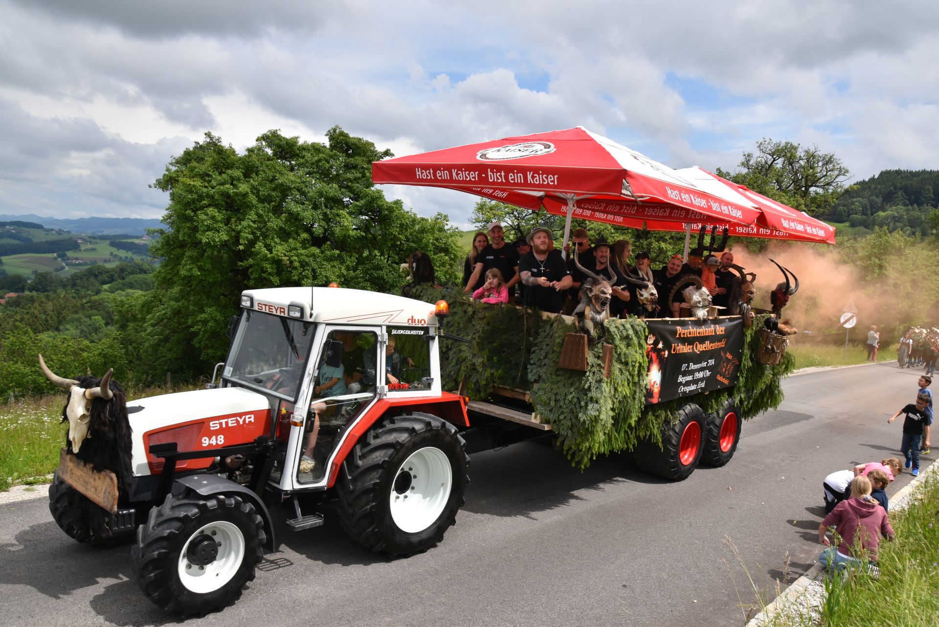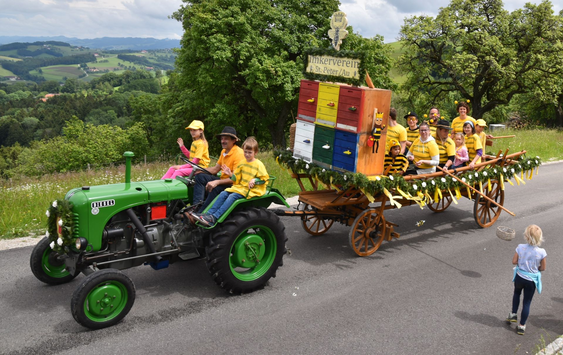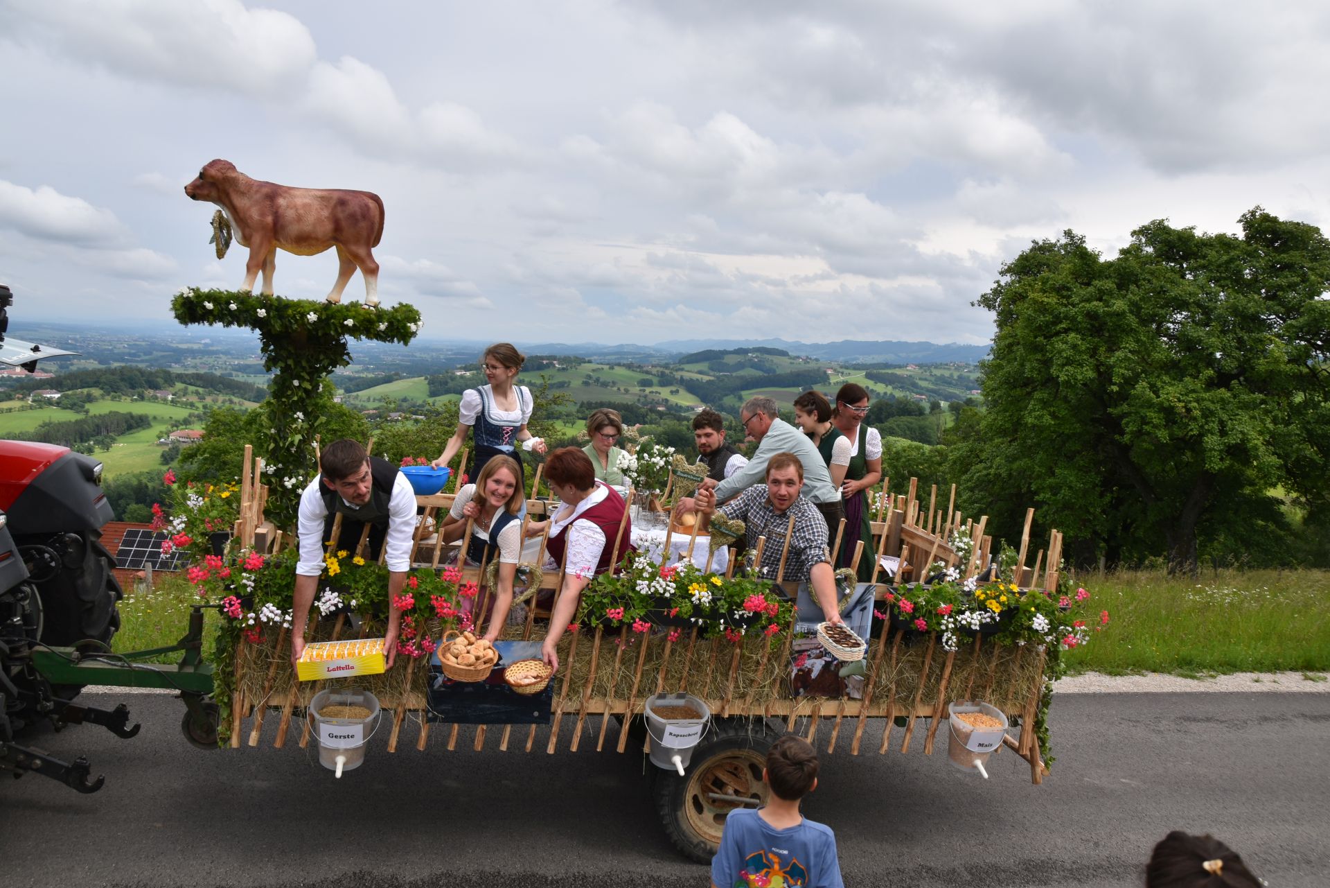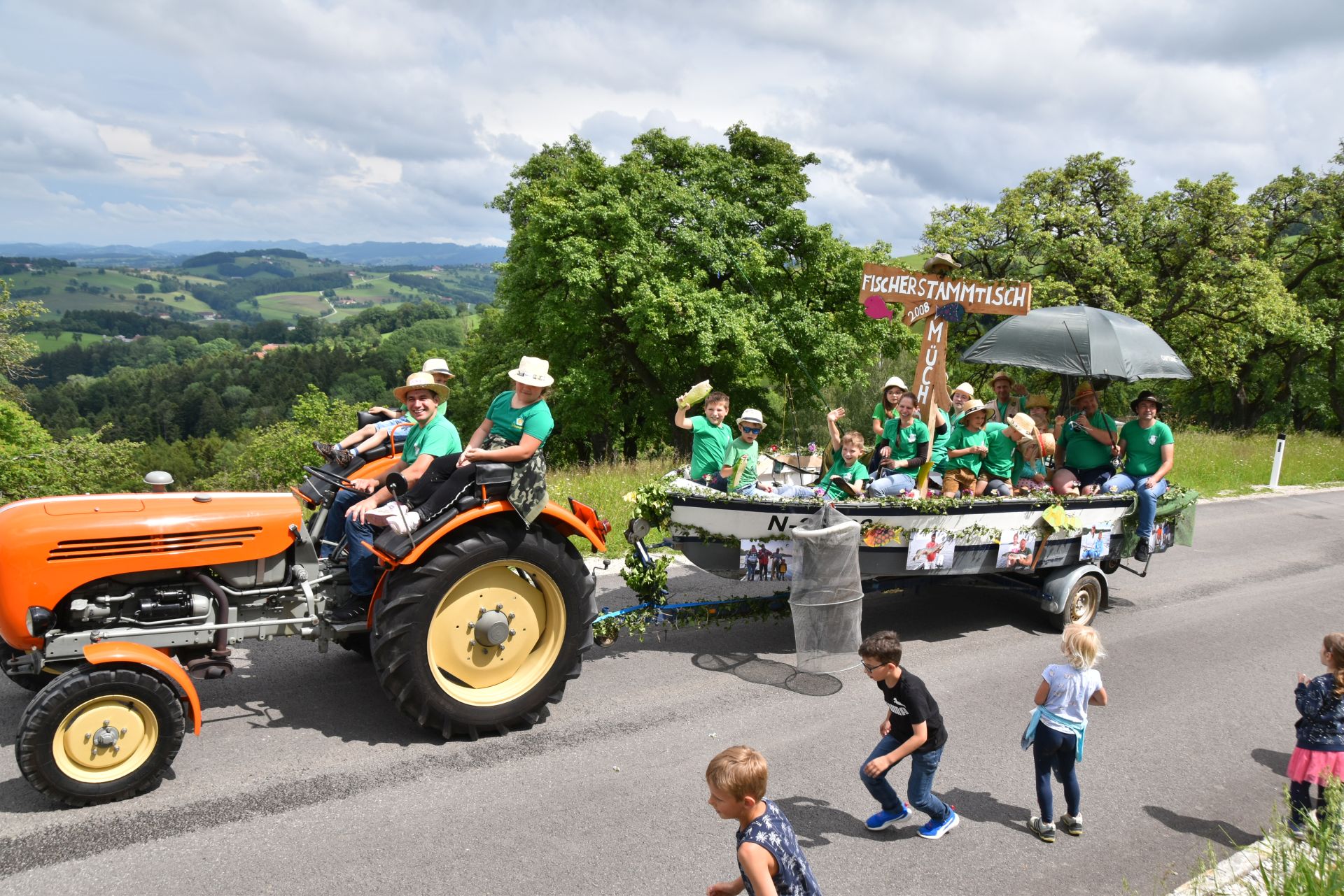 Unter den vielen teilnehmenden Vereinen war auch die Dorferneuerung St. Michael mit einem prächtig geschmückten Wagen und viel guter Laune mit dabei.