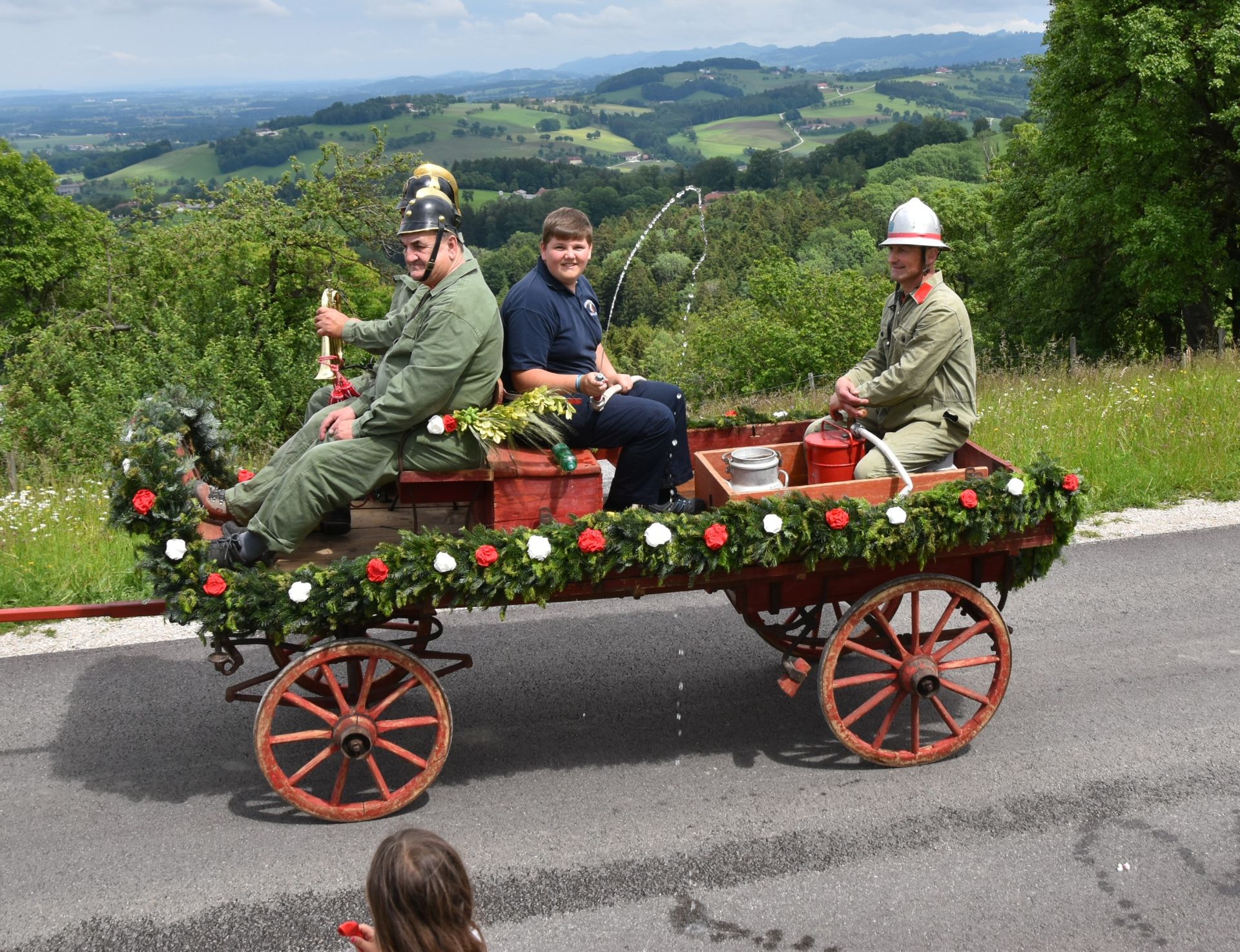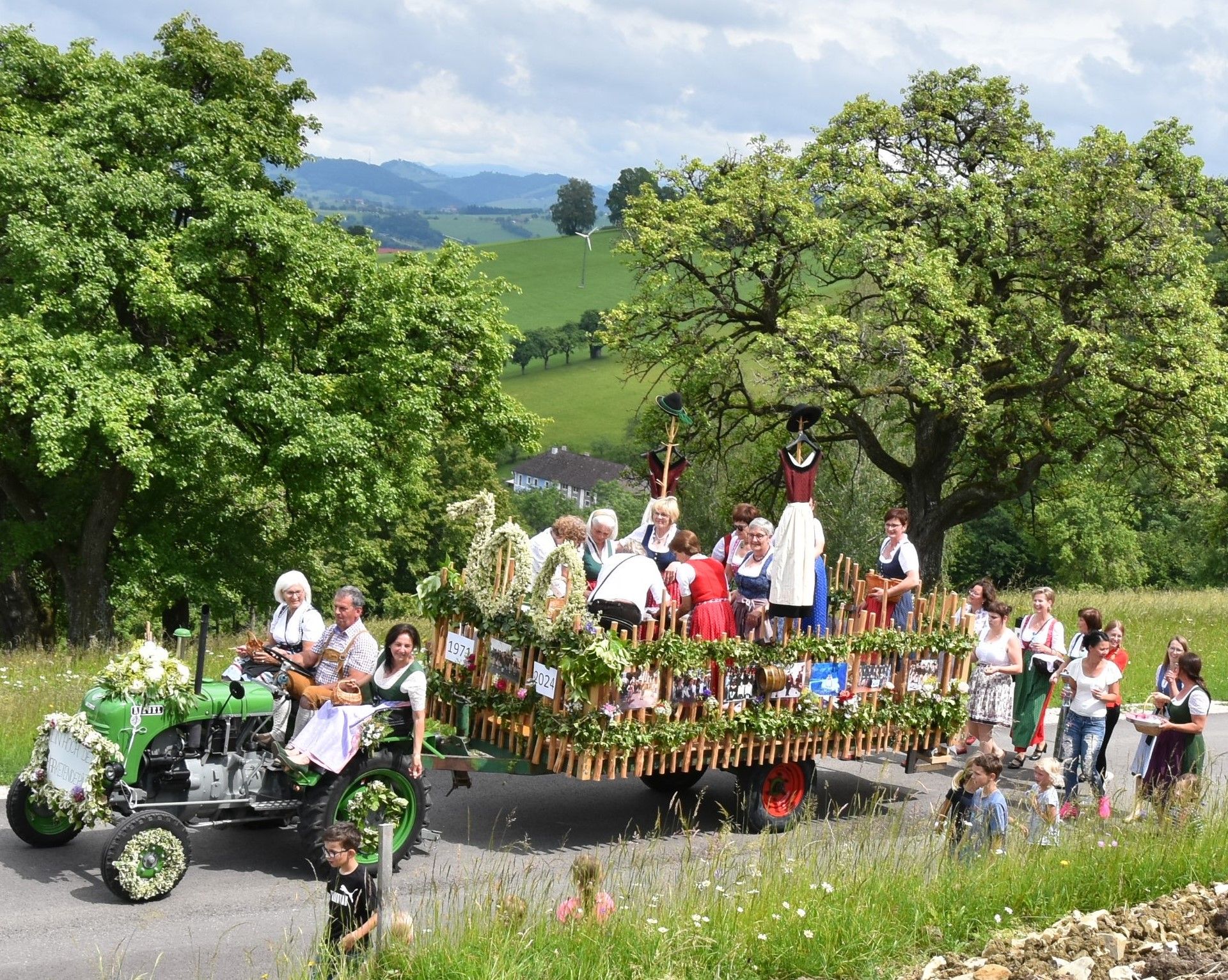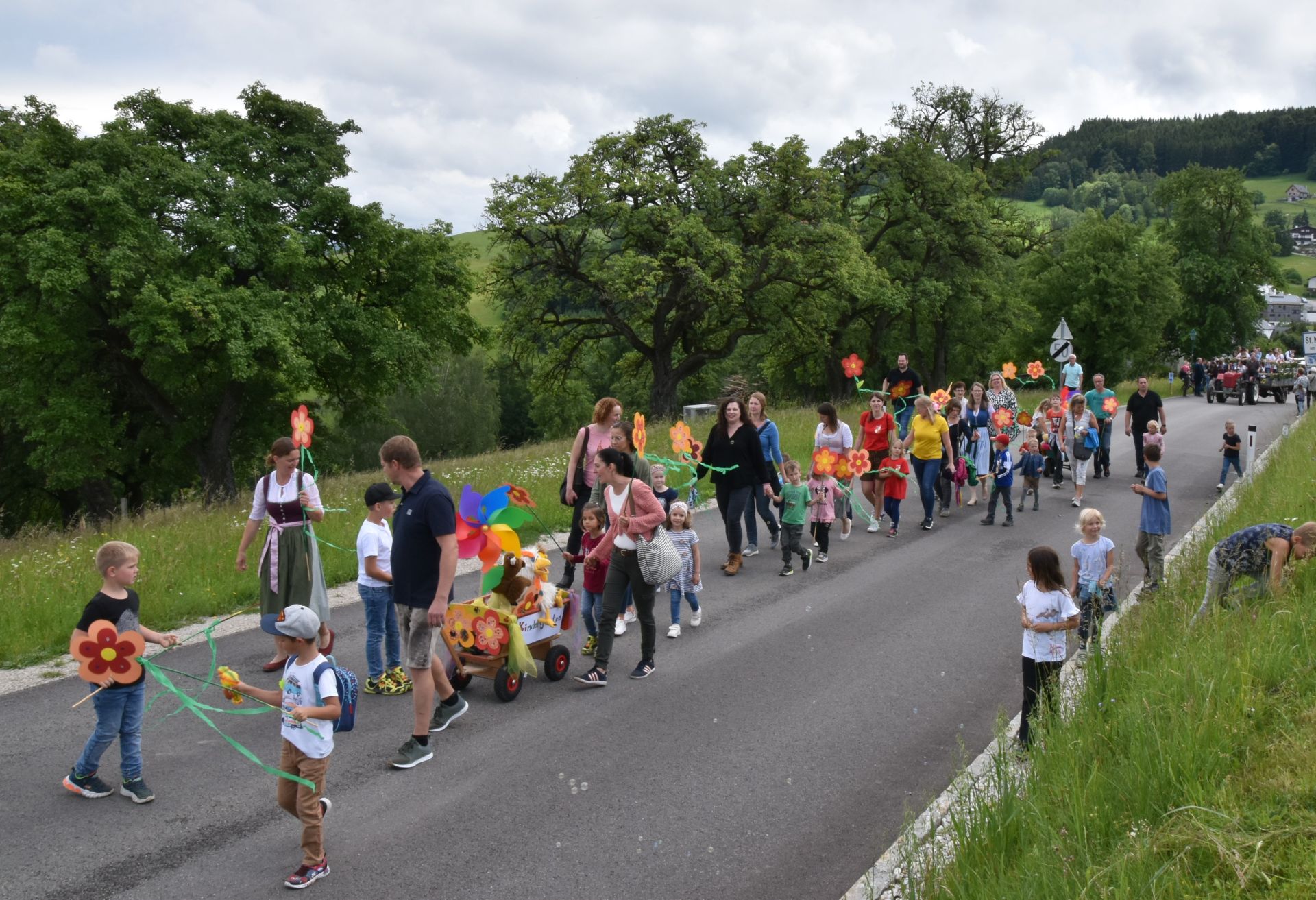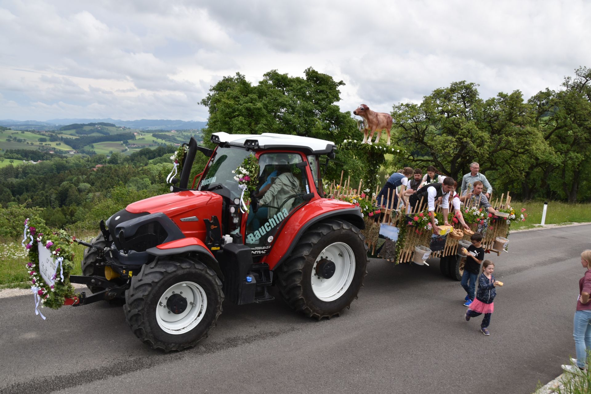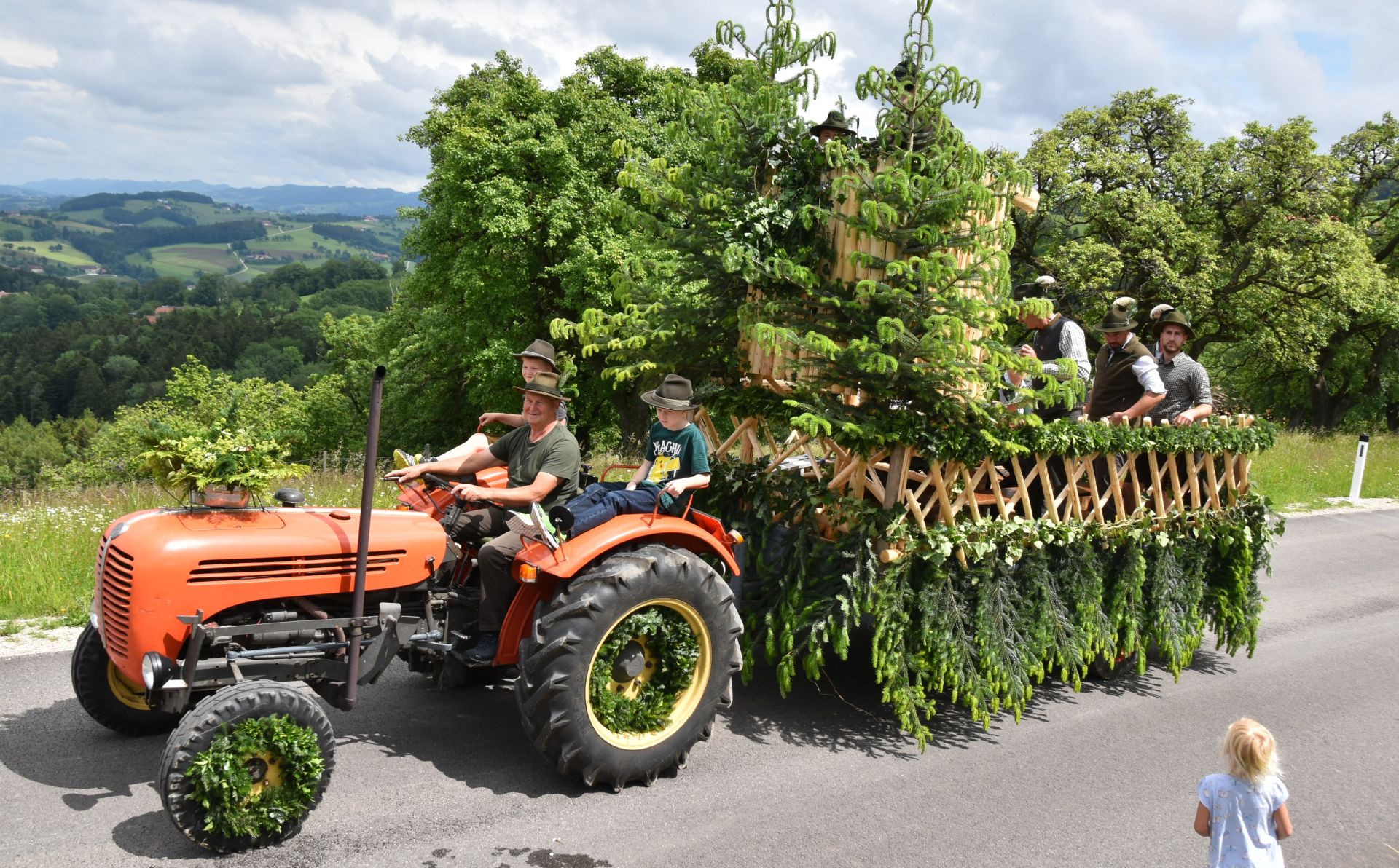 Unter den vielen teilnehmenden Vereinen war auch die Dorferneuerung St. Michael mit einem prächtig geschmückten Wagen und viel guter Laune mit dabei.