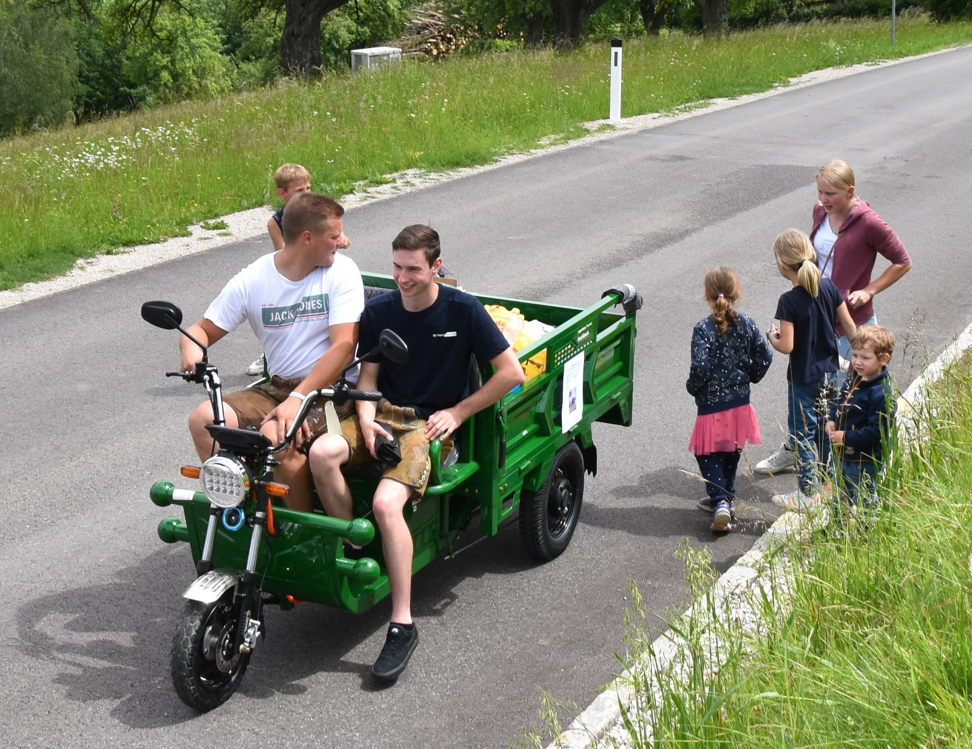 Fest und einem prächtigen Festwagenumzug belohnt, und auch der Wettergott zeigte sich von seiner gnädigen Seite. In vielen Arbeitsstunden wurden die Festwägen geschmückt, damit sie beim großen Umzug Freude, gute Laune und Süßigkeiten bringen konnten, die von den Kindern begeistert aufgesammelt wurden. Am Ende des Festzuges wurden die teilnehmenden Gruppen von Sabrina Schmidbauer und den Festgästen auf der Ehrentribühne gebührend empfangen. Im Festzelt wurde dann noch lange und ausgiebig weiter gefeiert.