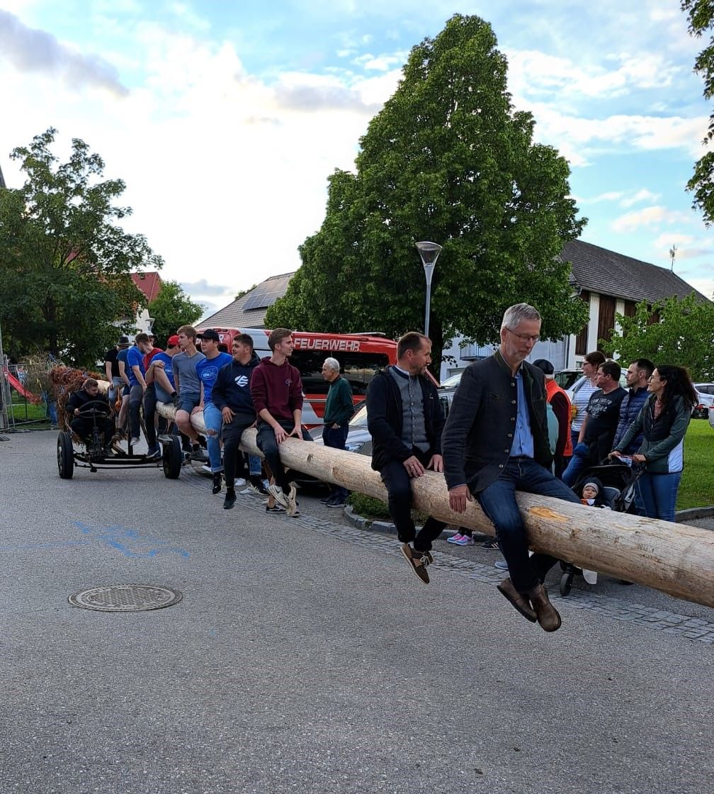 Am 24. Mai wurde der Michöner Maibaum aus den Niederungen von Biberbach wieder in seine Heimat zurückgebracht. Aber in welch traurigem Zustand! Ganz z'rupft und z'nepft liegt der ehemals so stolze Baum jetzt beim Koglmoar Franz in der Wiese.