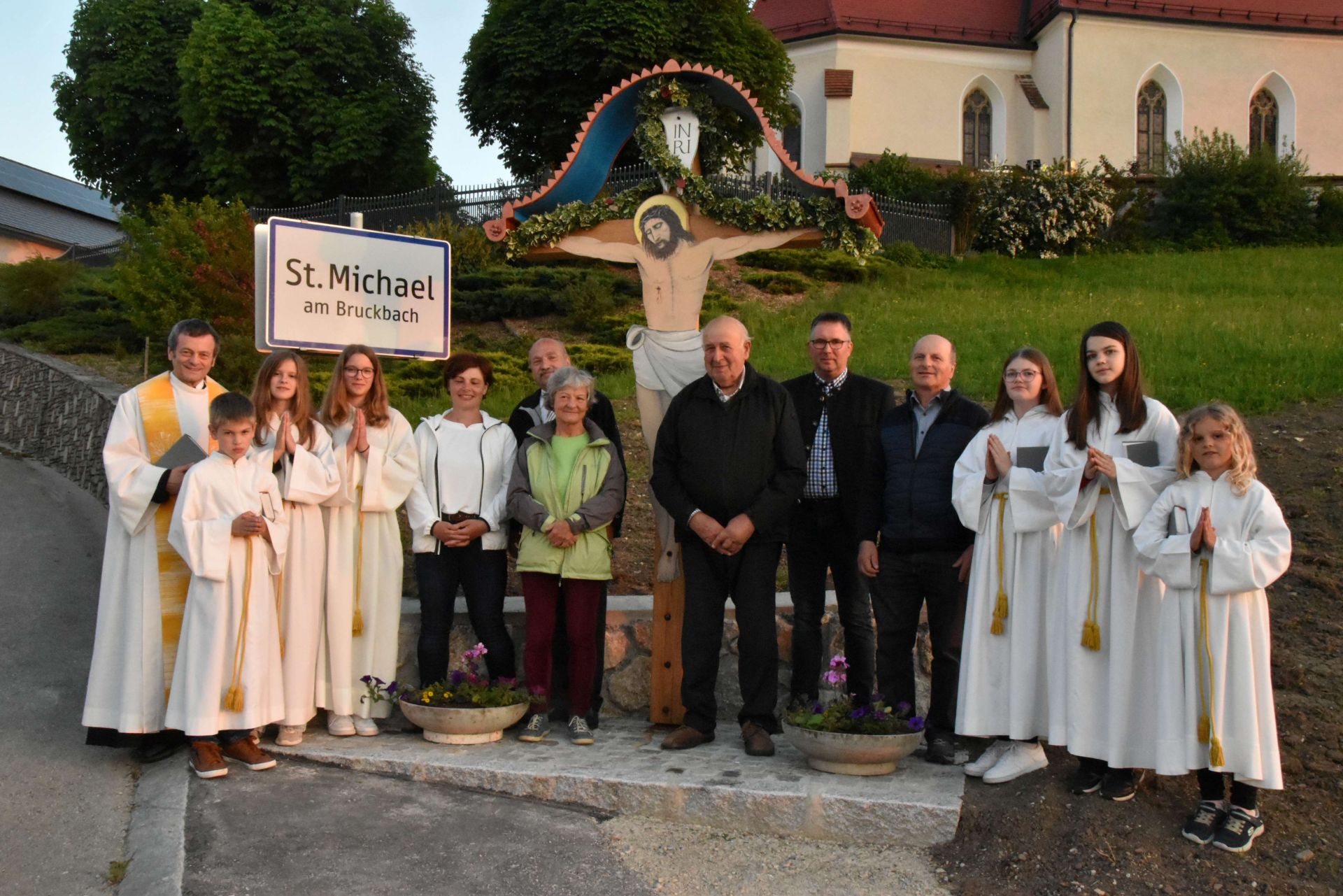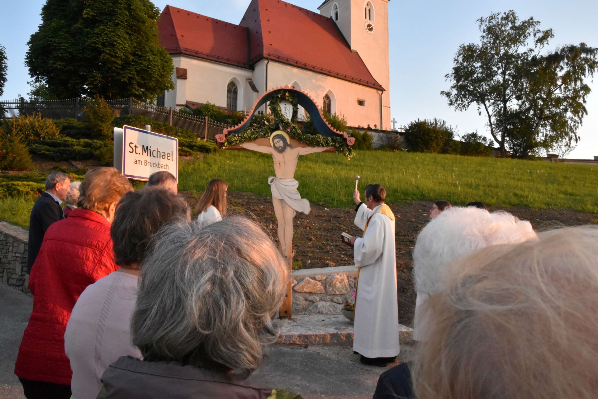 Am Abend des 10. August wurde das Kreuz an seinem neuen Standort von Pater Laurentius im Beisein aller Unterstützer der Neuerrichtung und der Messbesucher wieder geweiht und seiner Bestimmung als religiöses Wahrzeichen von St. Michael für viele weitere Jahre übergeben.
