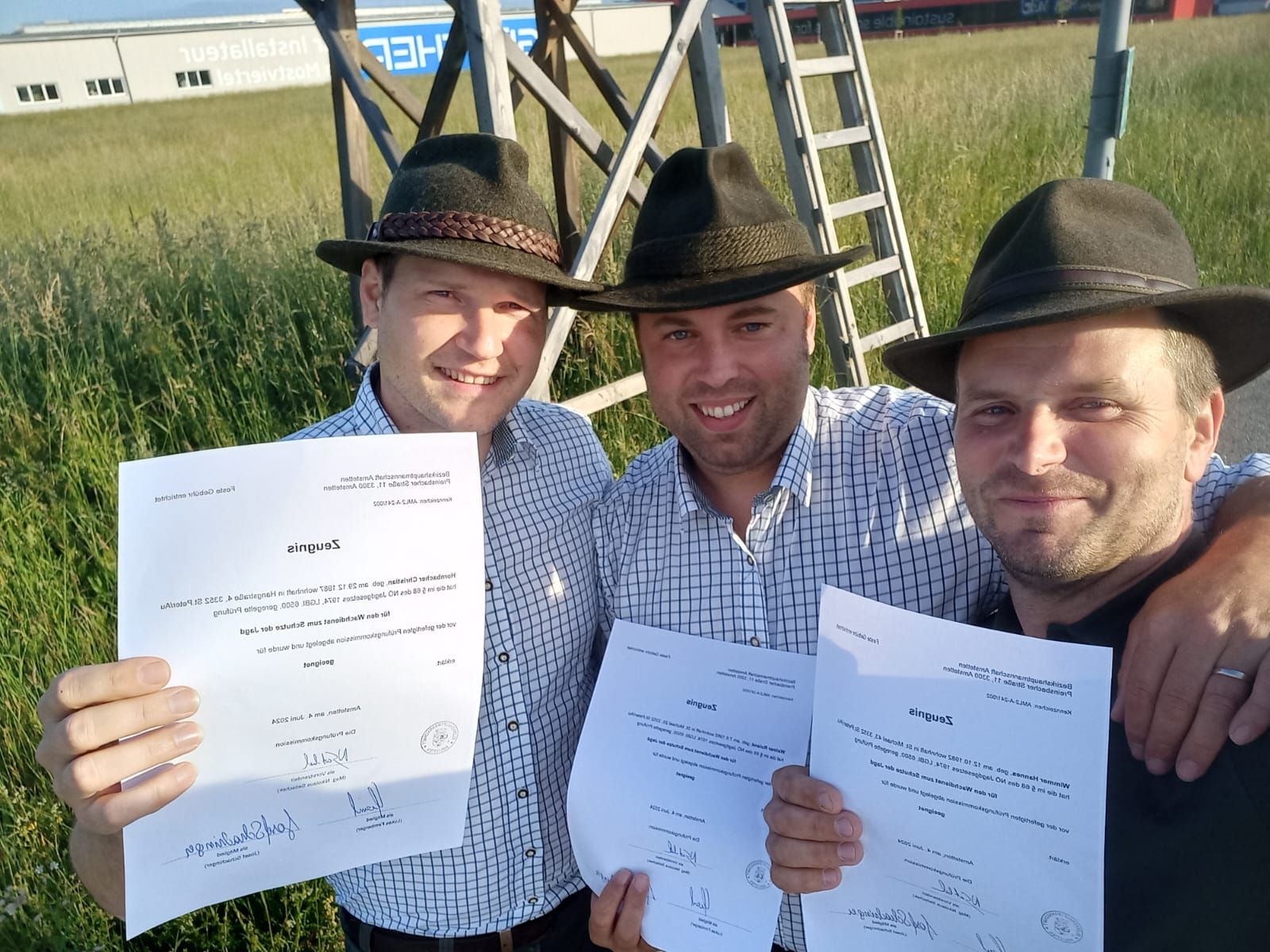 Die Freude war groß bei Christian Hornbachner, Roland Wallner und Hannes Wimmer, als sie die nicht gerade einfache Jagdaufseherprüfung erfolgreich bestanden hatten und das Zeugnis in Händen halten konnten.