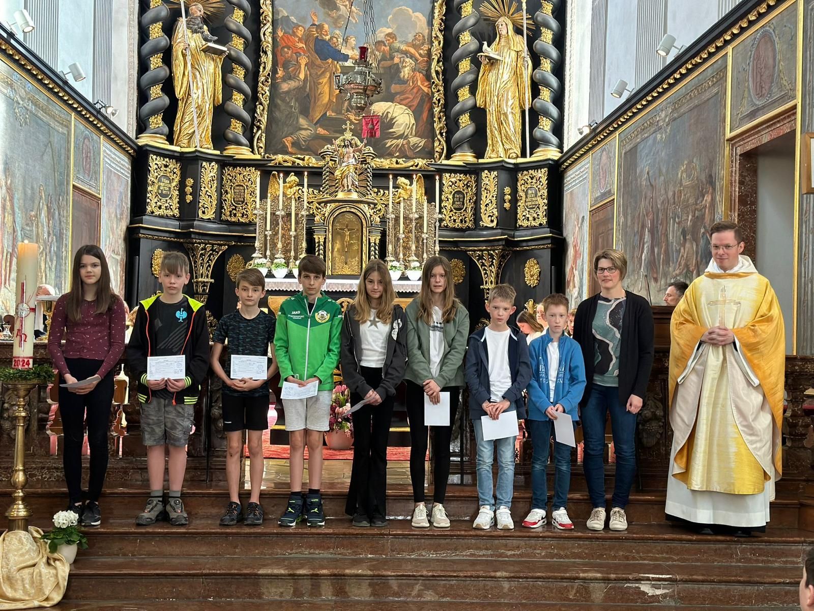 47 Firmlinge aus den Pfarren St. Michael und Seitenstetten bereiten sich gerade mit großem Einsatz auf ihren großen Tag vor. Am Sonntag, dem 15.4. erhielten sie bei der Firmsendungsmesse in der Stiftskirche ihre Firmkarte. Danach pilgerten sie mit ihren Firmpaten durch die wunderschön blühende Landschaft nach St. Michael zu einer kurzen Andacht.